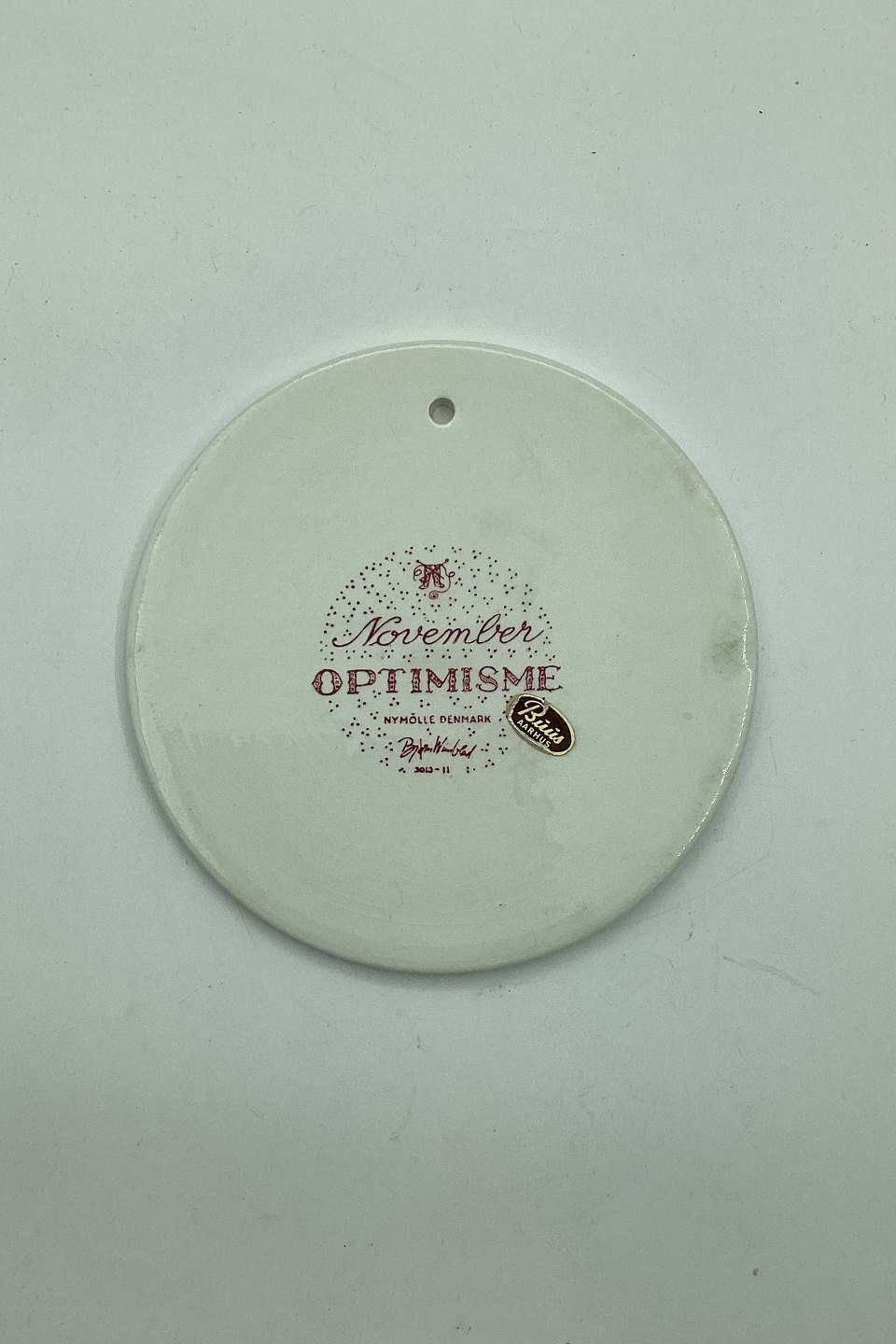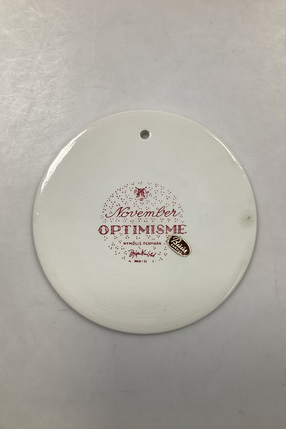 Red monthly plate in faience for November - OPTIMISME (Optimism). Designed by Bjørn Wiinblad for Nymølle. In good condition. The factory mark on the back. Dimensions: 15 cm (5.90 inches)