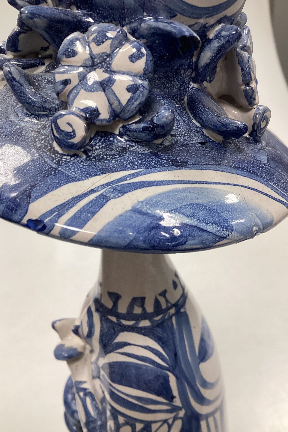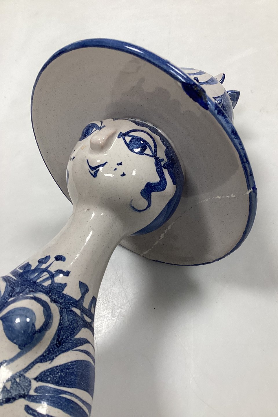 Bjorn Wiinblad figurine from The Four Seasons, Spring No M20. Signed in 1972. Measures 32 cm / 12.6 in. Shows several repairs to head, hat and foot.