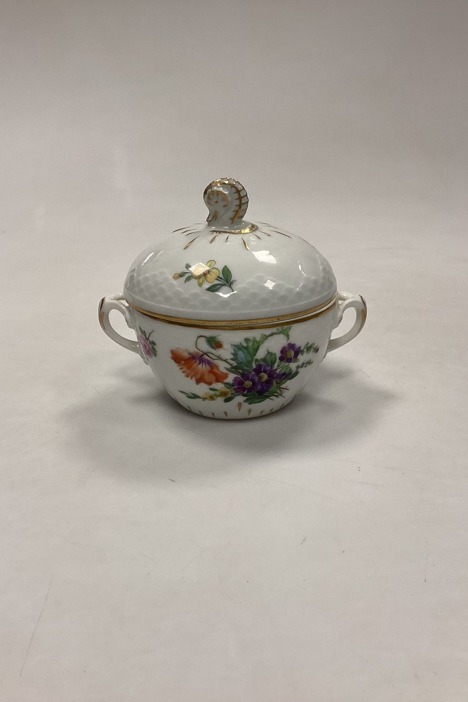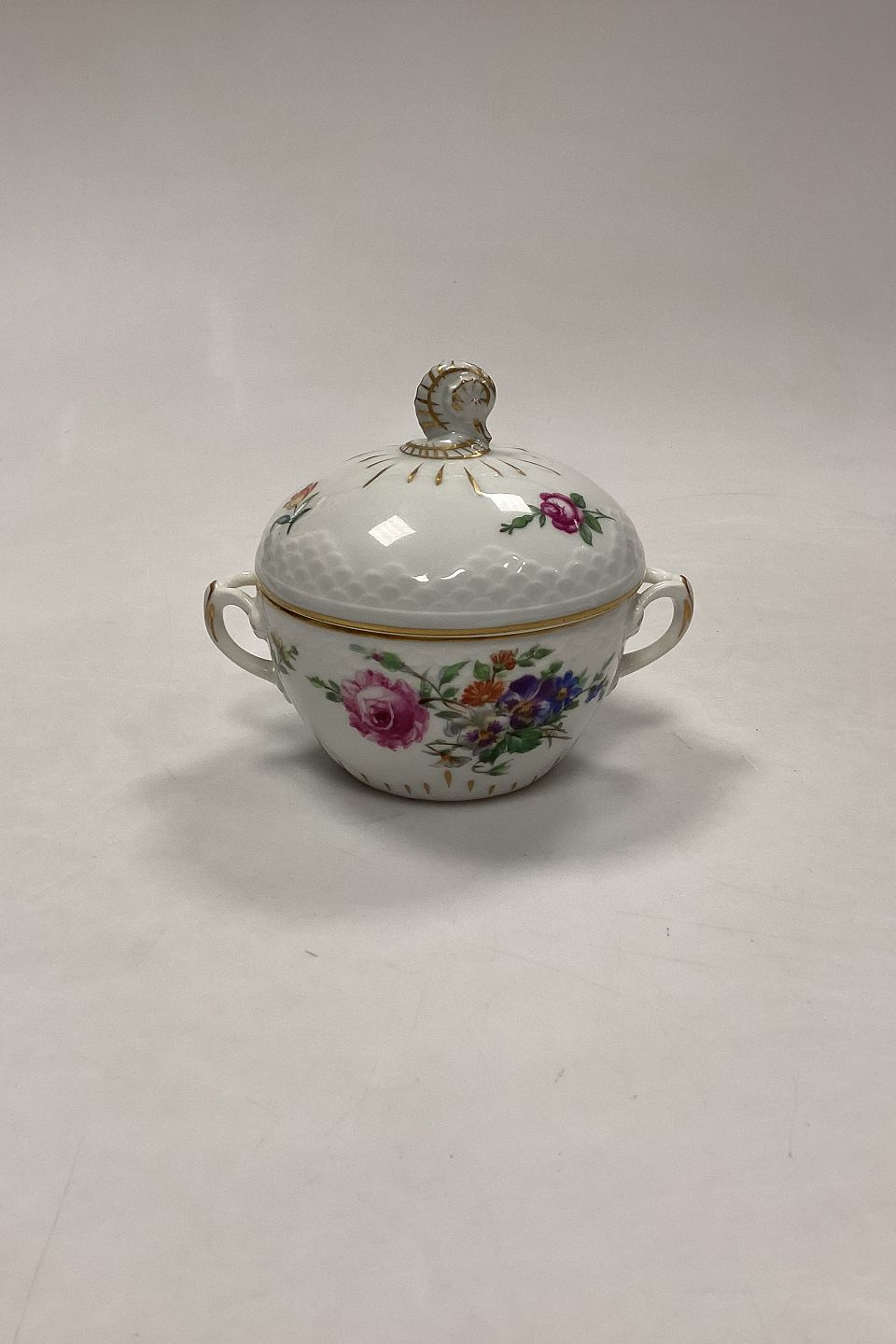 Bing and Grondahl Saxon Flower, White Large Sugar Bowl No. 94. Measures 12 cm dia. / 4.72 in.