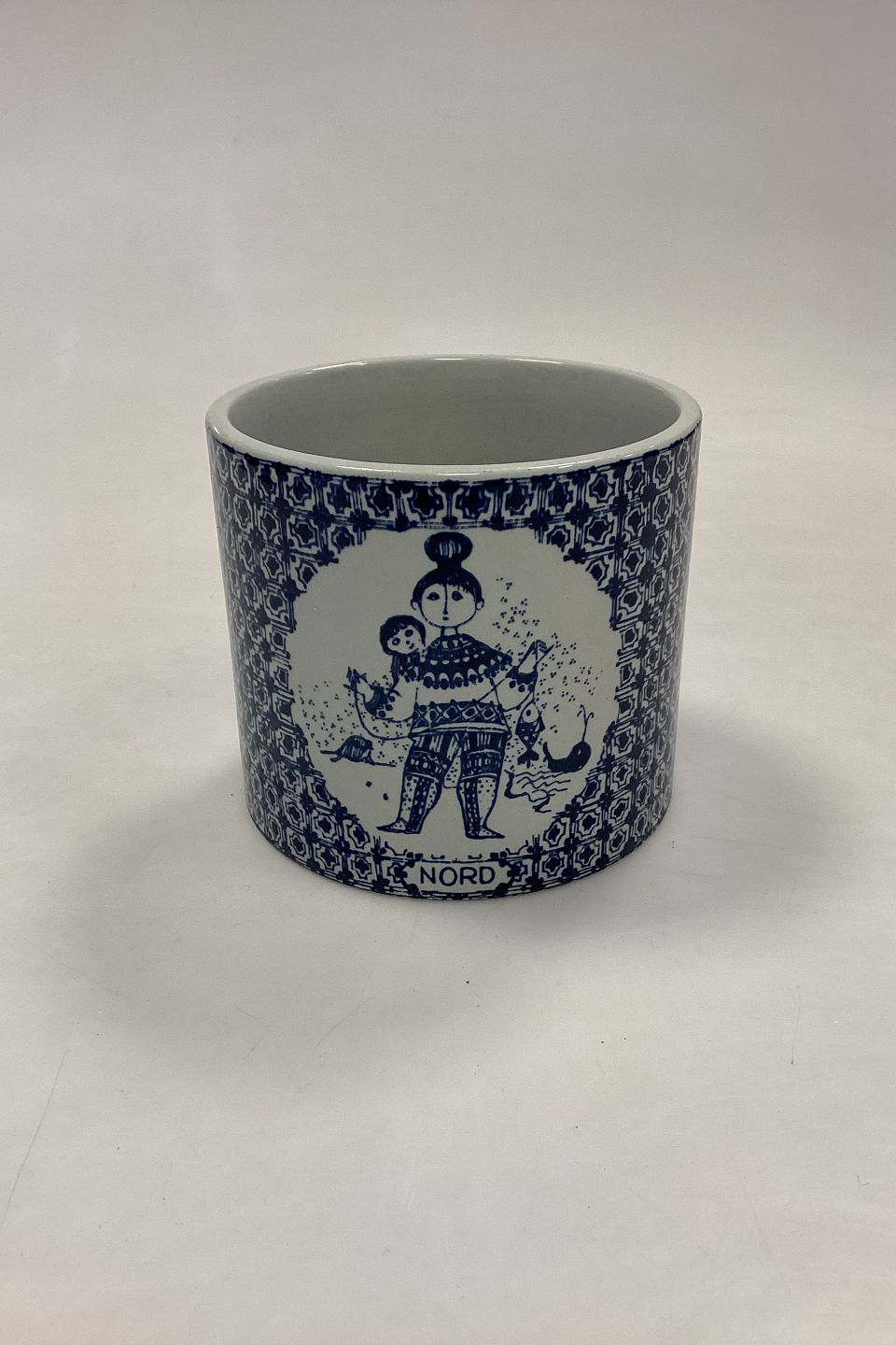 Bjørn Wiinblad Nymølle Flower Pot - NORD No. 3022-697. Blue decoration. Measures 9.5 cm x 10.5 cm / 3.75 in. x 4.14 in.