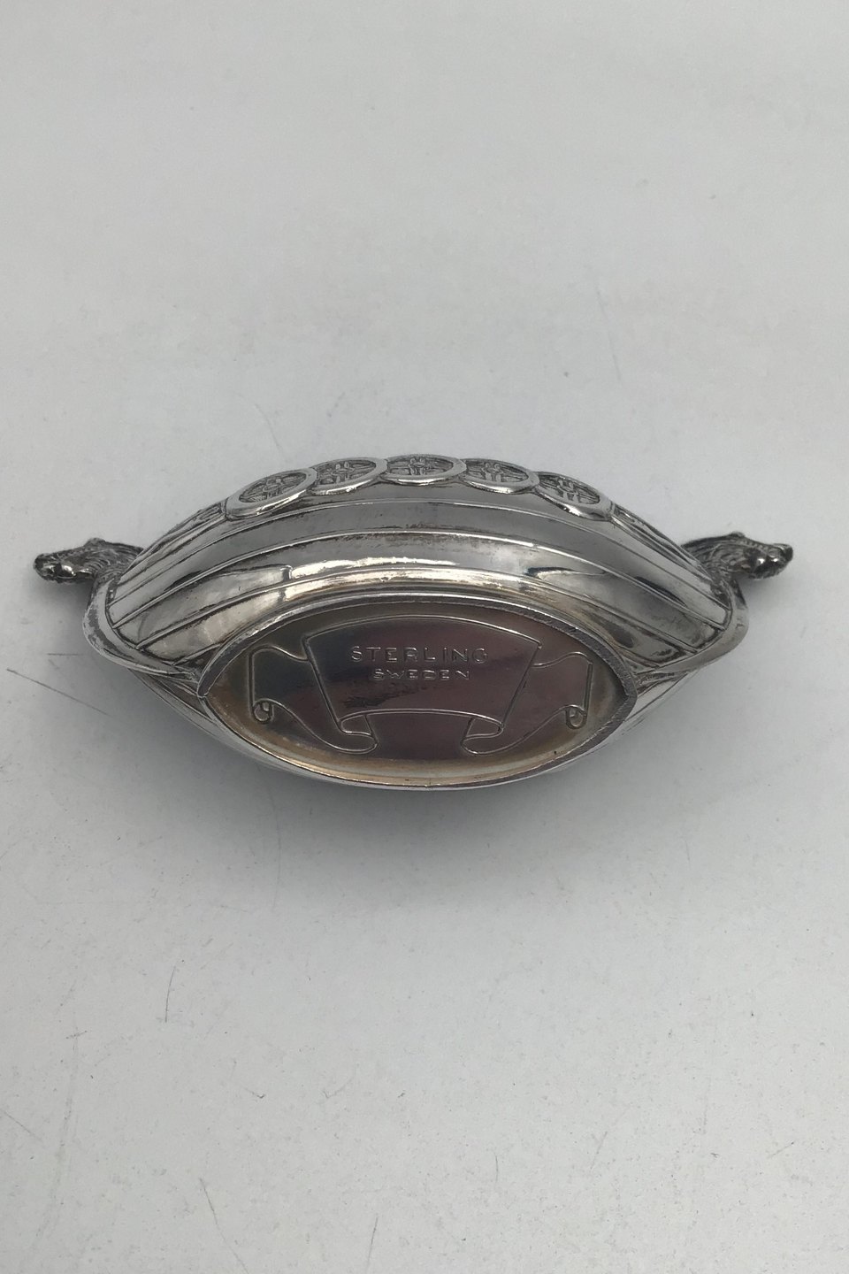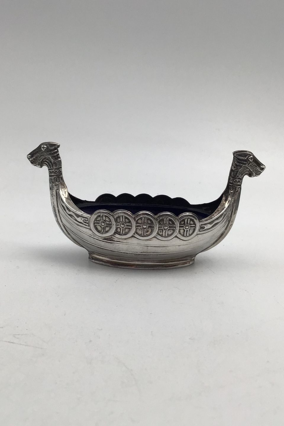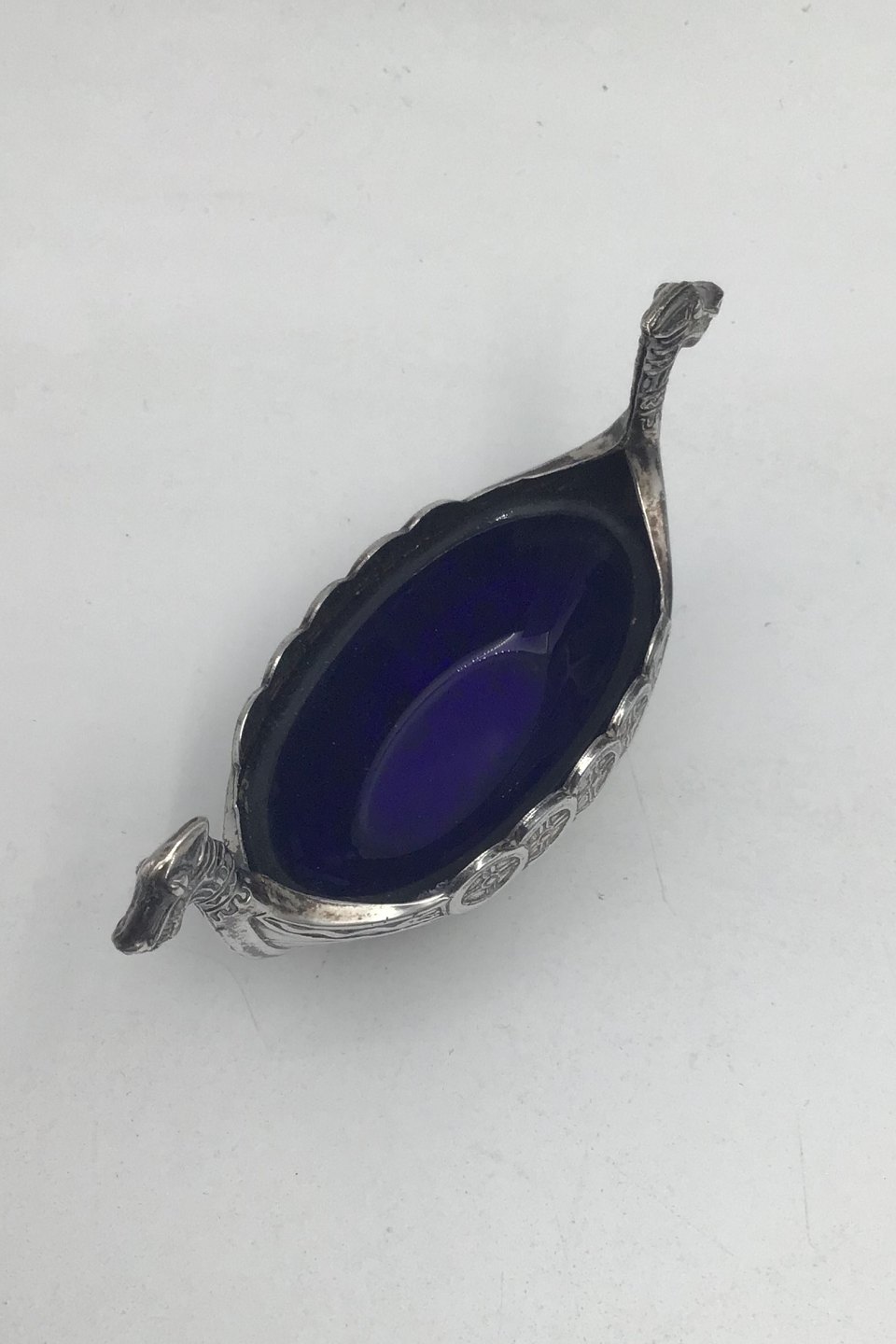 Swedish Sterling Silver Salt Cellar (Viking Dragon Ship) Measures 8.5 cm x 3.2 cm (3.34 inch x 1.25 inch) Weight 32.7 gr (1.15 oz) (incl. blue glas insert)