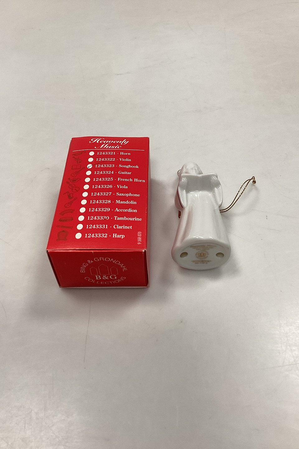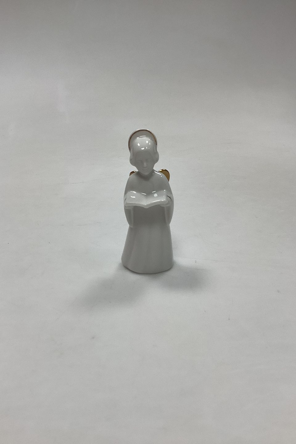 Bing and Grøndahl Figurine Heavenly Music Angel - Songbook No. 3. Christmas ornament in blanc de chine porcelain with gold and string for hanging. Measures 9.5 cm / 3.74 in.