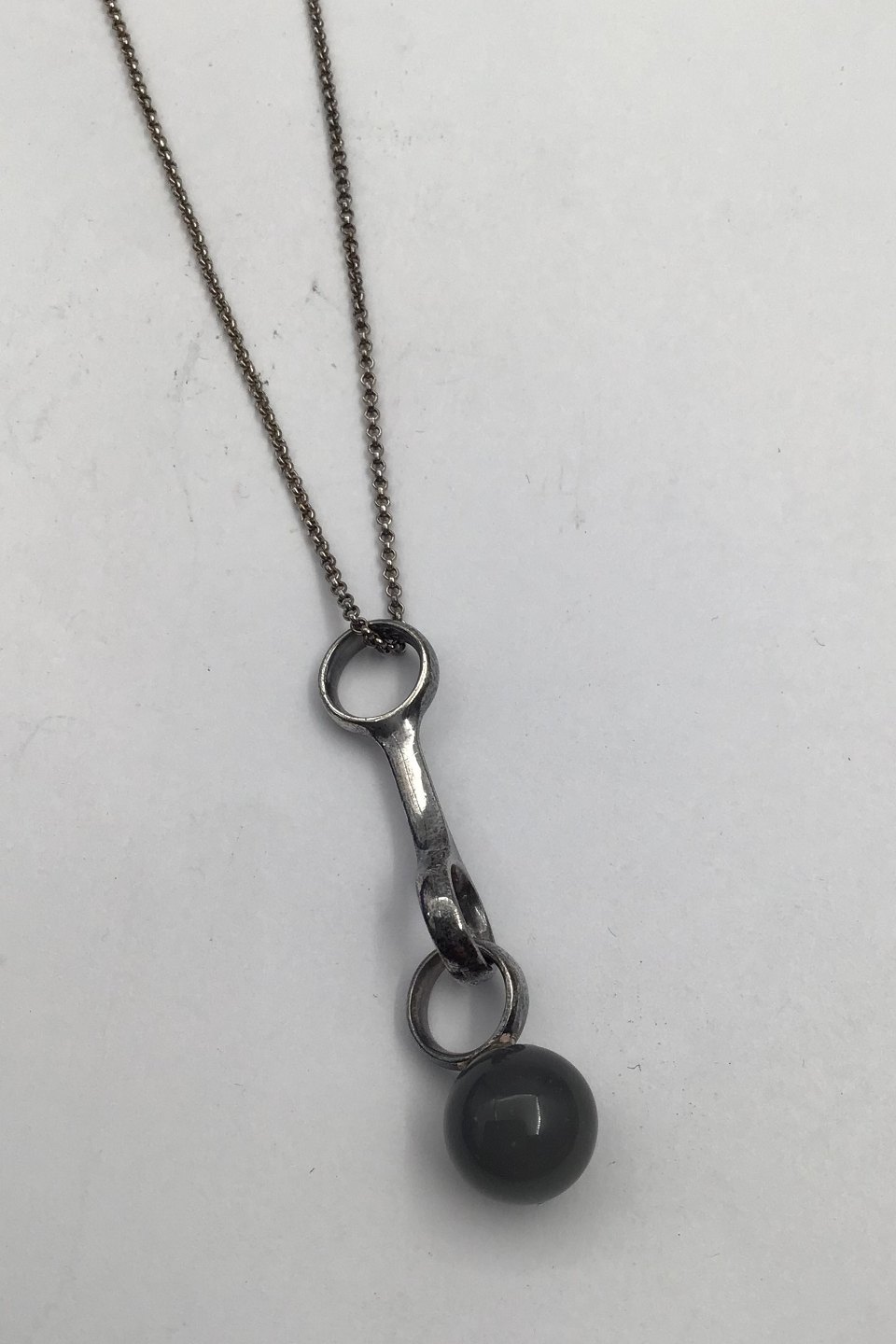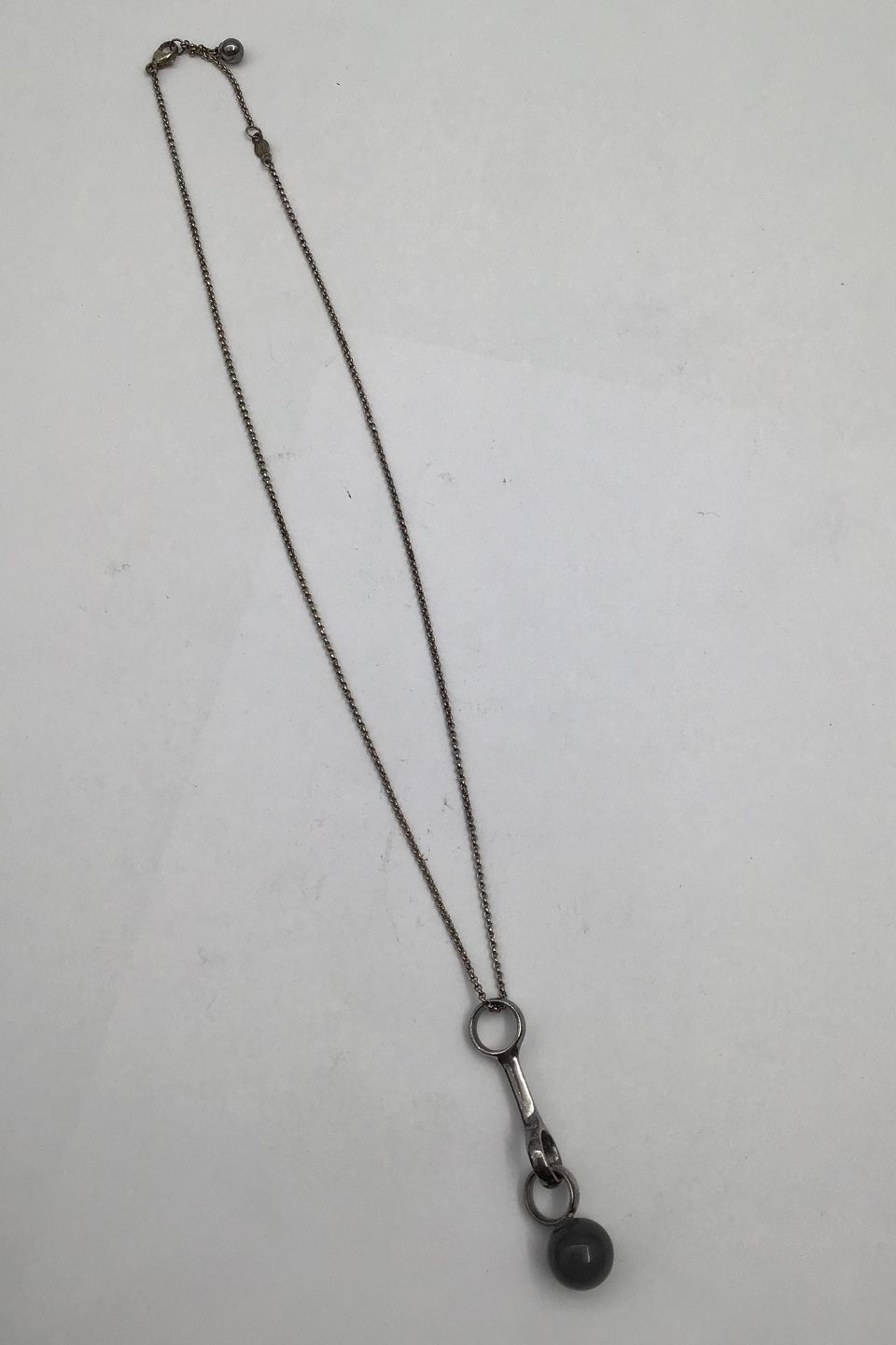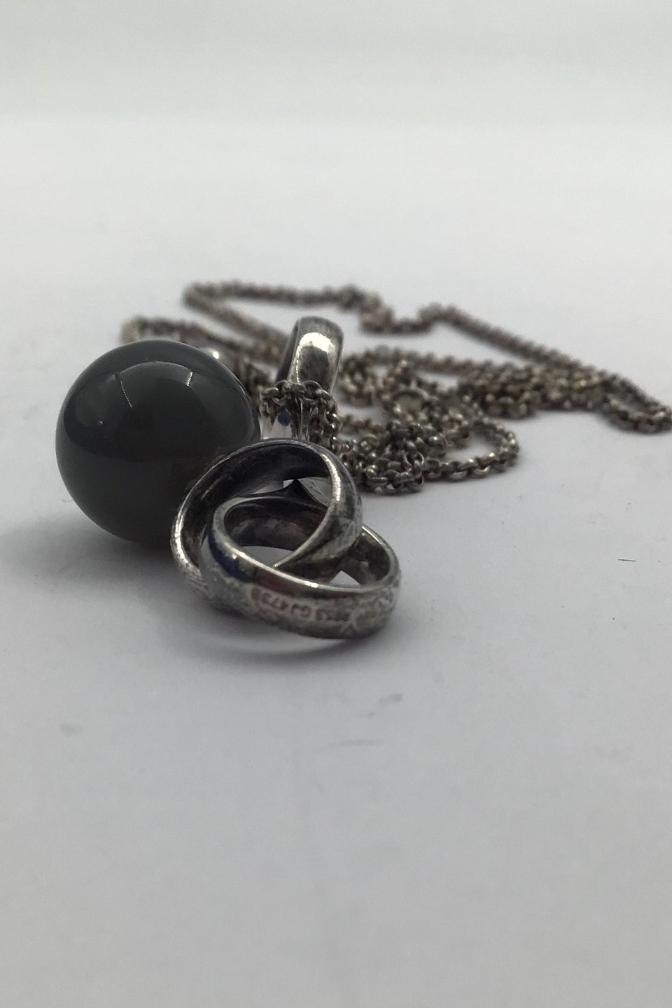 Georg Jensen Sterling Silver Pendant No 473 B Sphere Olive Agate Measures 5 cm(1.96 inch) Chain 45 cm (17.71 inch) Combined Weight 8.03 gr (0.28 oz)
