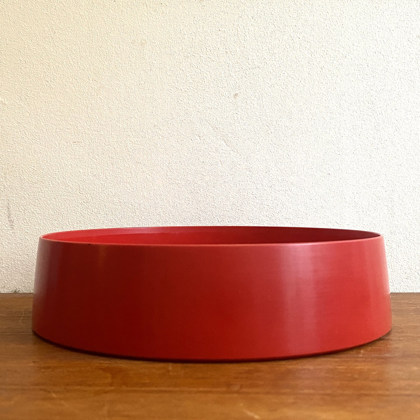 Kristian Solmer Vedel.Low bowl of red melamine.Kristian Vedel designed a series of stackable plates and bowls in 1955 for Torben Ørskov's shop Form & Farver. In 1961 this series, made of melamine, won a gold medal at La Triennale di Milano. The series dates from around 1972.H. 5 cm. Diameter 19 cm.