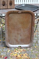 Decorative old tray with wide brass rim, zinc base with a very fine patina. . .