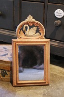 Old French 1800 century wall mirror in gilded wooden frame with fine patina. H:33,5 x 28,5cm.