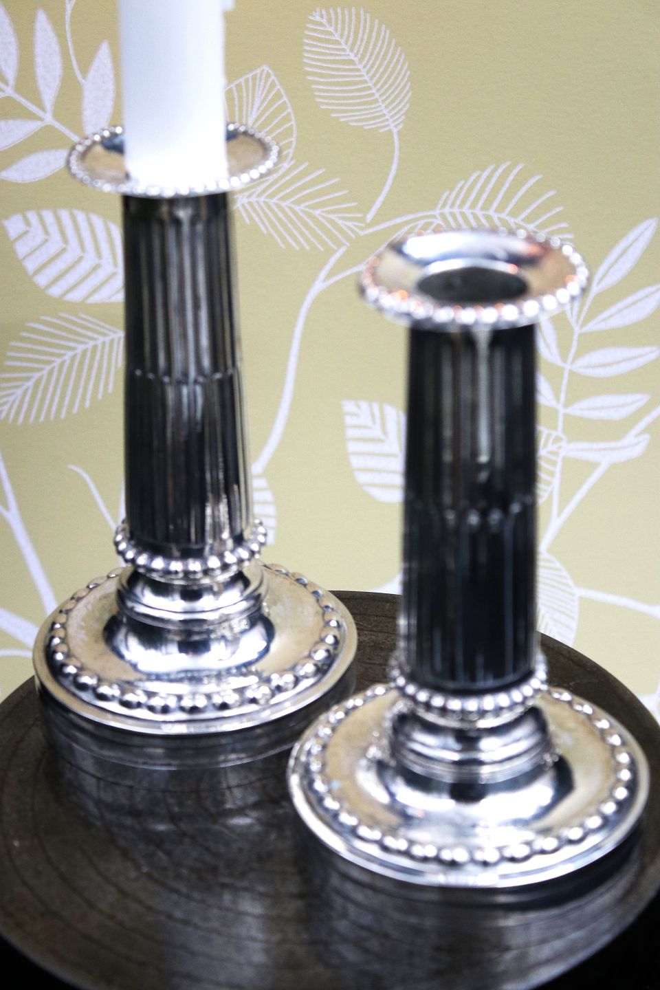 Et par tidlidt 1800 tals sølv lysestager med københavner stempler.