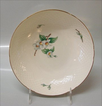 Description: Bing and Grondahl Heimdahl 044 Bowl, round (medium) 21 cm (312)- Cream porcelain with gold rim decorated with Jasmin - not to be confused with Appleflower Marked with the three Royal Towers of Copenhagen.Bing & Groendahl In mint and nice condition