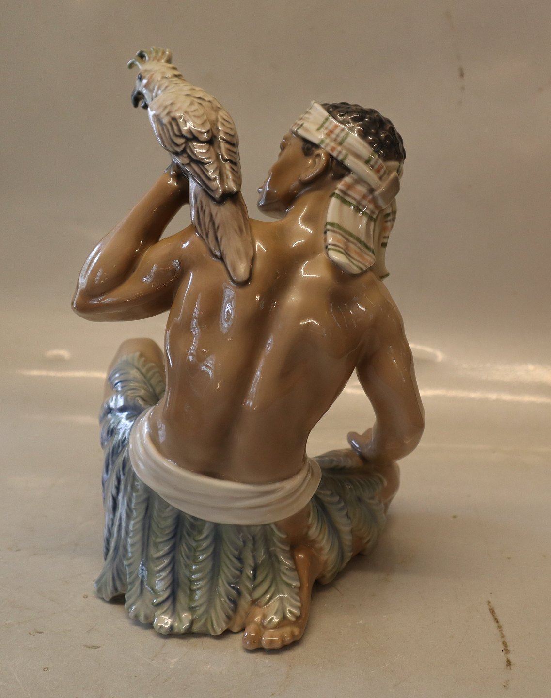 Description: Dahl Jensen 1305 Sudanese Man with cockatoo (DJ) 23 cm Oriental Man with bird Marked with the Royal Crown and DJ Copenhagen. In nice and mint condition Dahl Jensen Worked first for Bing & Groendahl B&G from 1897