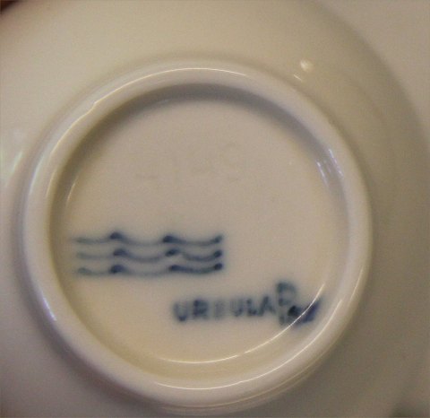 Beskrivelse: 4149 Kgl. Lille krus 6.5 cm, dekoreret og signeret af Ursula Printz Mogensen (1920-1993) fra Royal Copenhagen I hel og fin stand. Usula som var gift med stentøjskunstneren Jørgen Mogensen og arbejdede som signerende kunstner på Royal Copenhagen 1951-1953