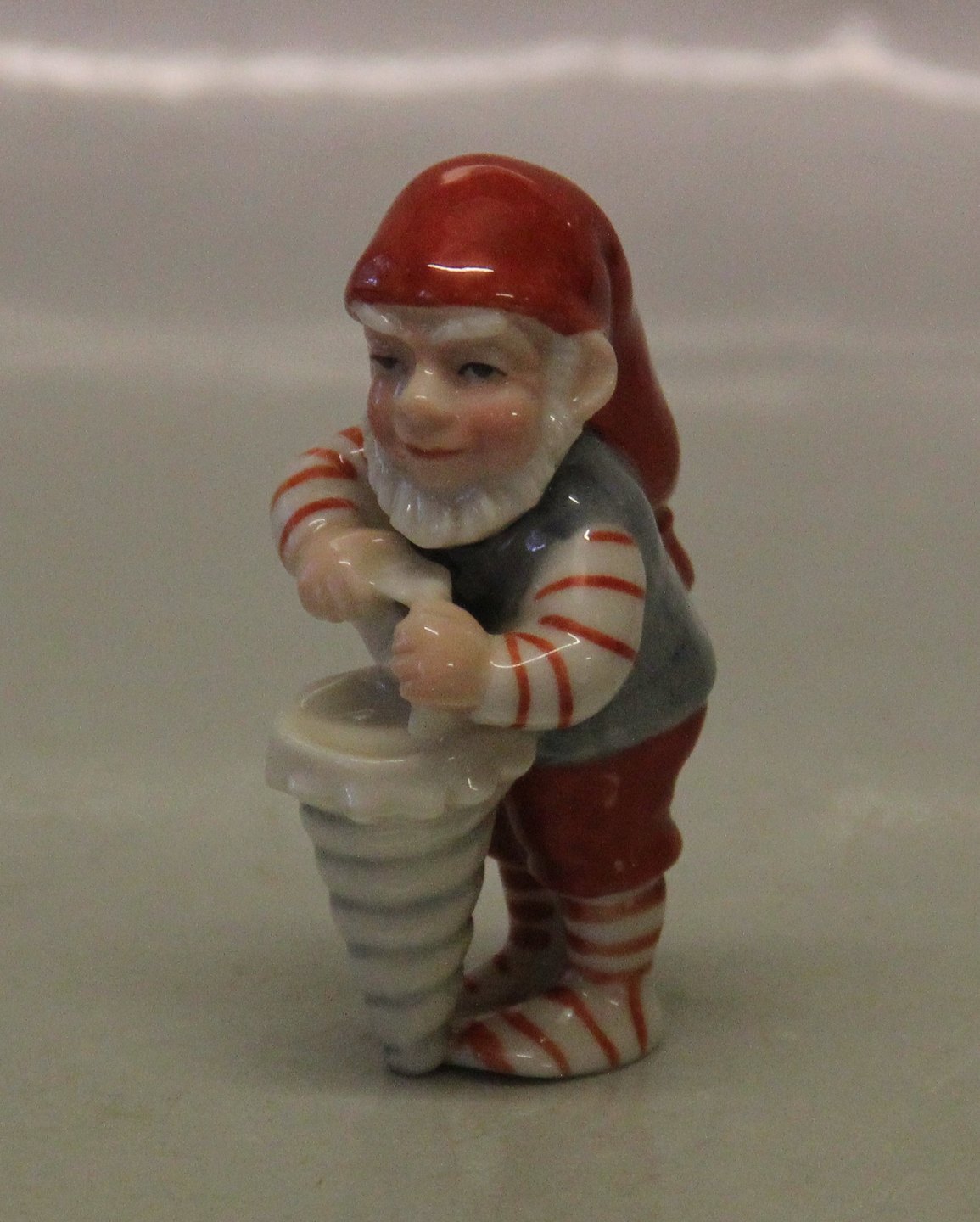 Beskrivelse: 0762 Kgl. Nisse med kræmmerhus 7 cm, Sven Vestergaard julefigur (1021762) fra Royal Copenhagen I hel og fin stand Julemand, Pixie,