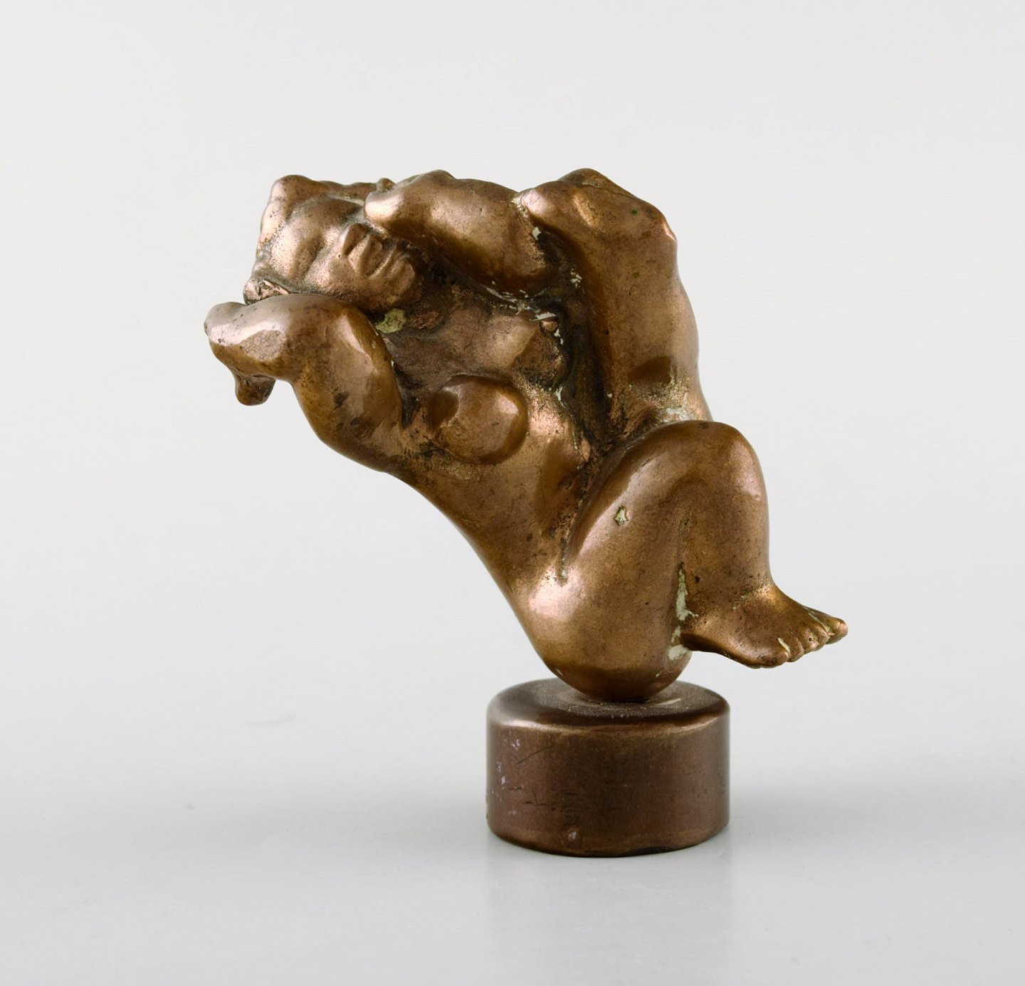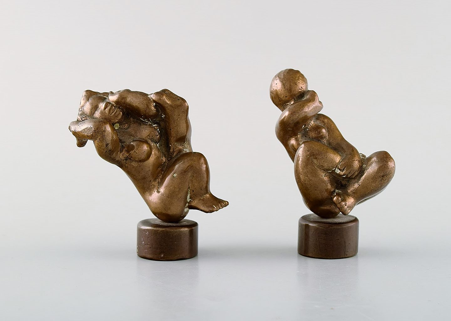 Danish bronze sculptor. A pair of patinated bronze figures. Naked women. Mid 20th century. In very good condition. Measures: 7.5 x 7.5 cm. Signed.