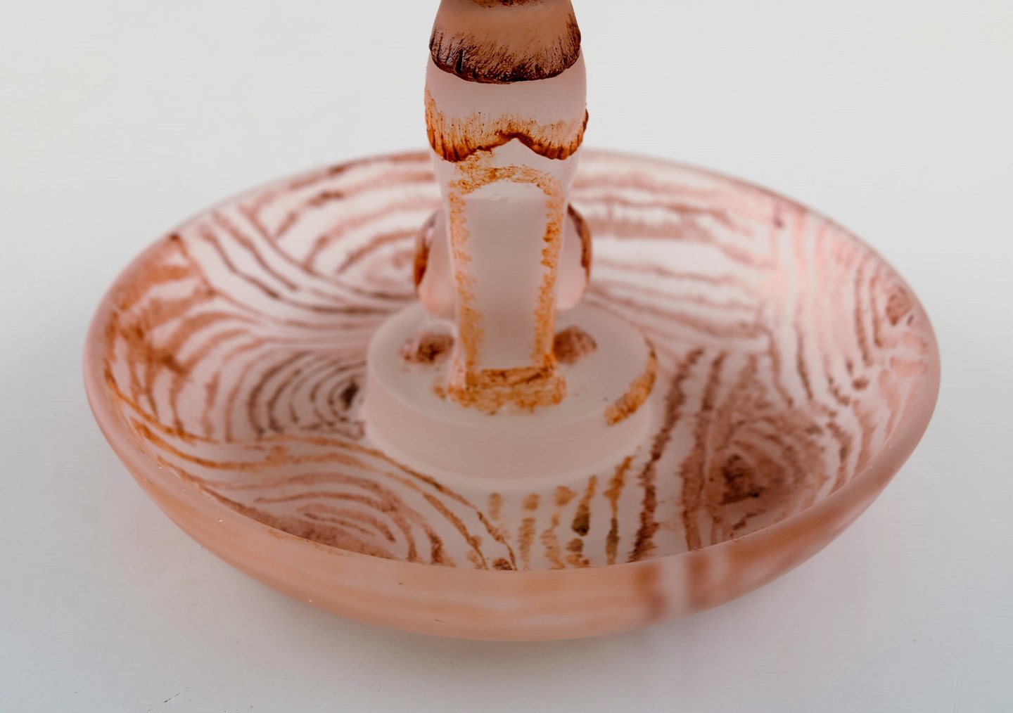 Early Rene Lalique chien pin dish / ring dish: round small bowl form with an applied sitting dog figure in the center in topaz glass