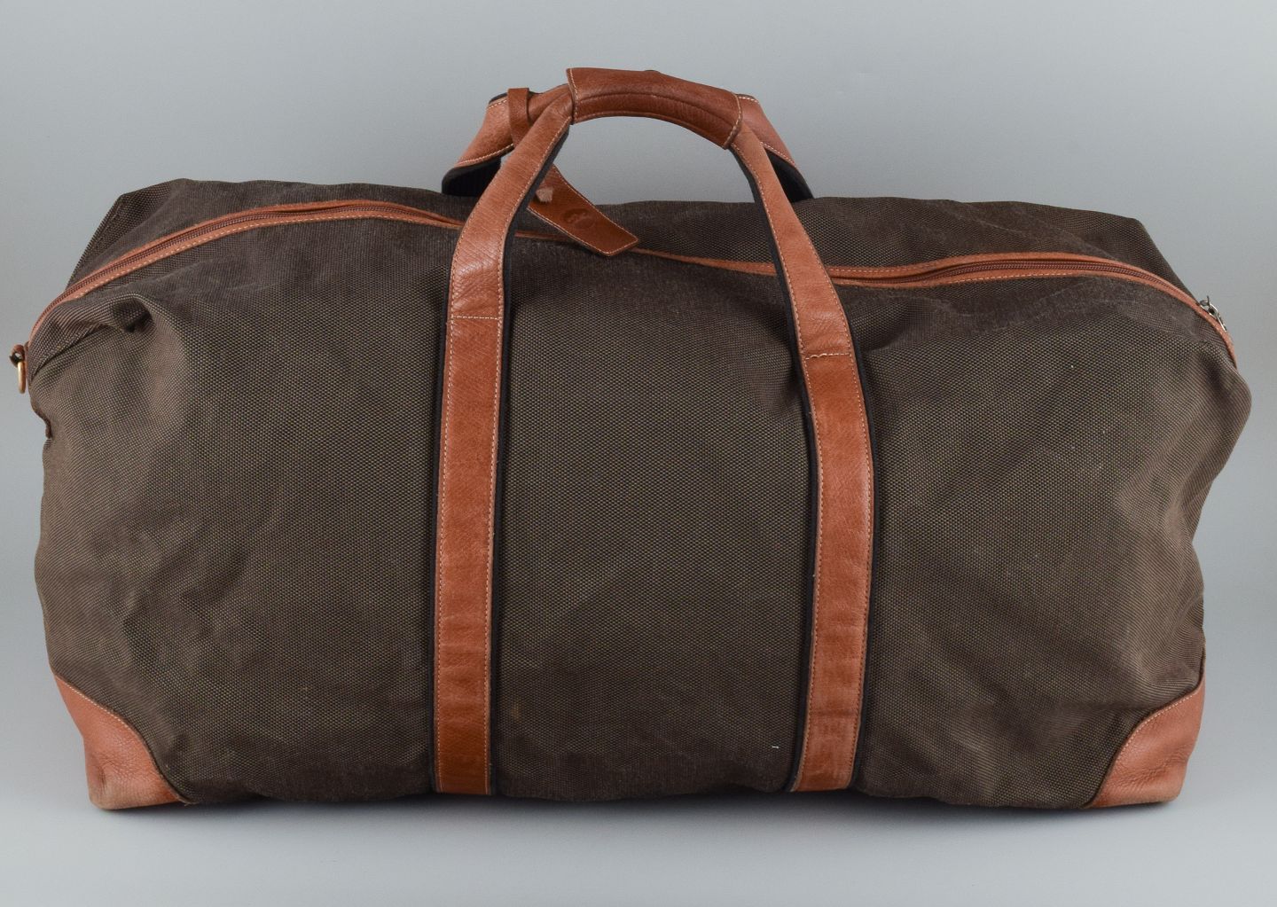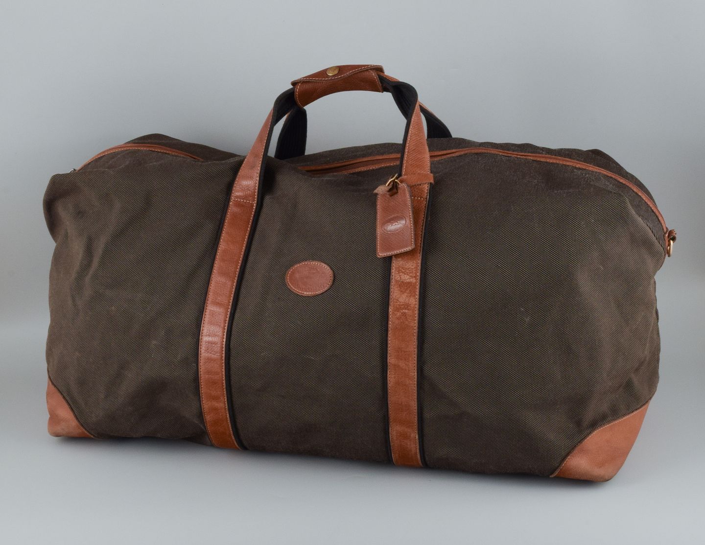 Longchamp, large travel bag in canvas and grain leather. Late 1900s. In excellent condition. Dimensions: L 75 x W 32 x H 31.0 cm.