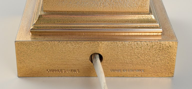 Charles & Fils, France. A pair of table lamps in patinated metal, designed with palm leaves in a vase. Approx. 1970. In perfect condition. Stamped Charles & Fils, Made in France. Dimensions: H 50.0 x D 11.0 cm.