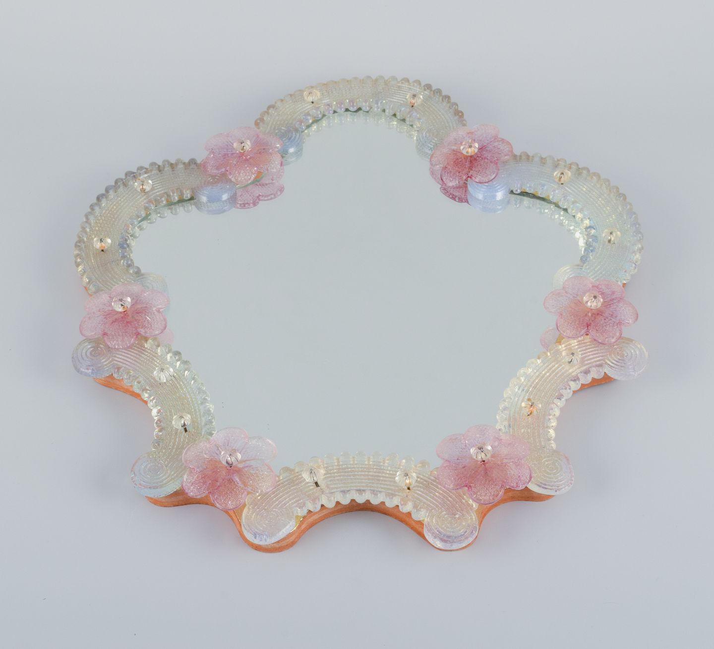 Murano, Venice, adorable mirror in art glass with gold and pink decoration. Approx. 1960/70s. In perfect condition. Dimensions: H 35.0 x W 30.0 cm.