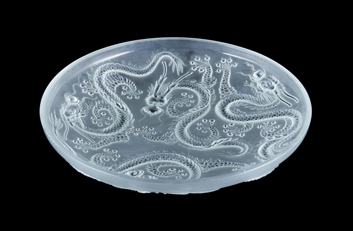 Josef Inwald, colossal Art Deco art glass bowl in Barolac glass, designed with dragons in oriental style.