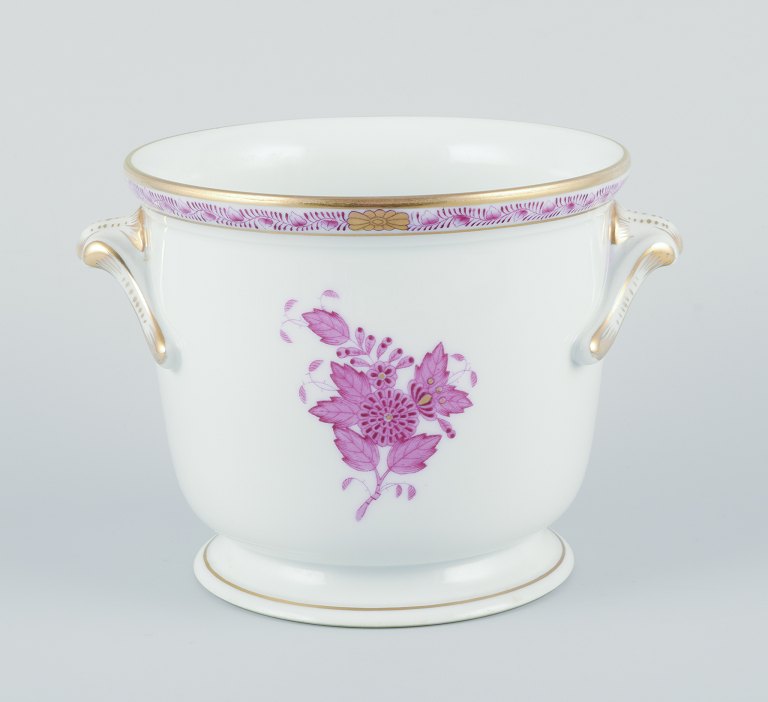 Herend, Hungary. "Apponyi" flowerpot. Hand painted with purple floral motifs and gold decoration. Circa 1970s. Marked. Perfect condition. Dimensions: W 17.0 cm. x H 12.0 cm.