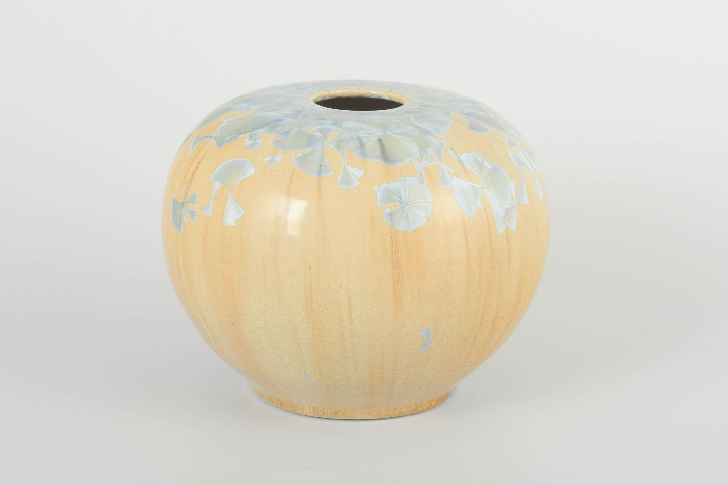 Crystalline glaze is an advanced ceramic technique in which crystals form spontaneously during high-temperature firing. The process requires great skill and precision and became especially popular among European studio potters in the latter half of the 20th century for its distinctive and unpredictable aesthetic.