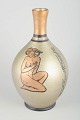 Elegant faience vase with a hand-painted motif of a seated female figure in classic Art Deco style. Executed in a golden glaze with black outlines and a geometric band decoration around the neck. A beautiful and characteristic example of Bo Fajans’ decorative ceramic production from the 1930s.
