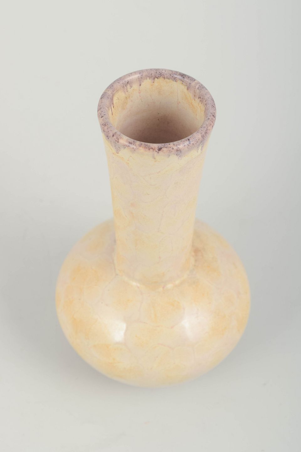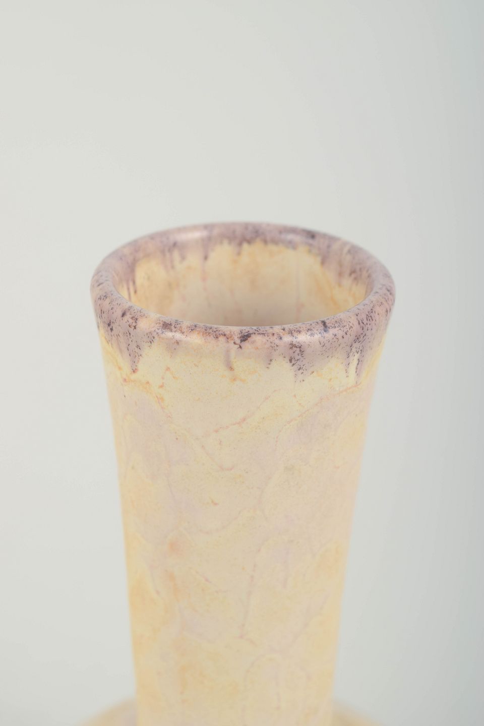 Handmade vase in glazed stoneware with a pale yellow crackle glaze and subtle violet tone along the rim. Model 2762.