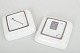 Two square faience dishes with characteristic geometric relief decoration and coloured glaze details in blue, yellow and red. Typical of Atterberg’s modernist expression of the 1960s.