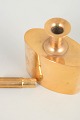 Elegant and sculptural hip flask in brass, 23 carat gold-plated, designed by Pierre Forssell for Skultuna. The characteristic oval body and the clean, geometric lid reflect Forssell’s refined modernist design language.