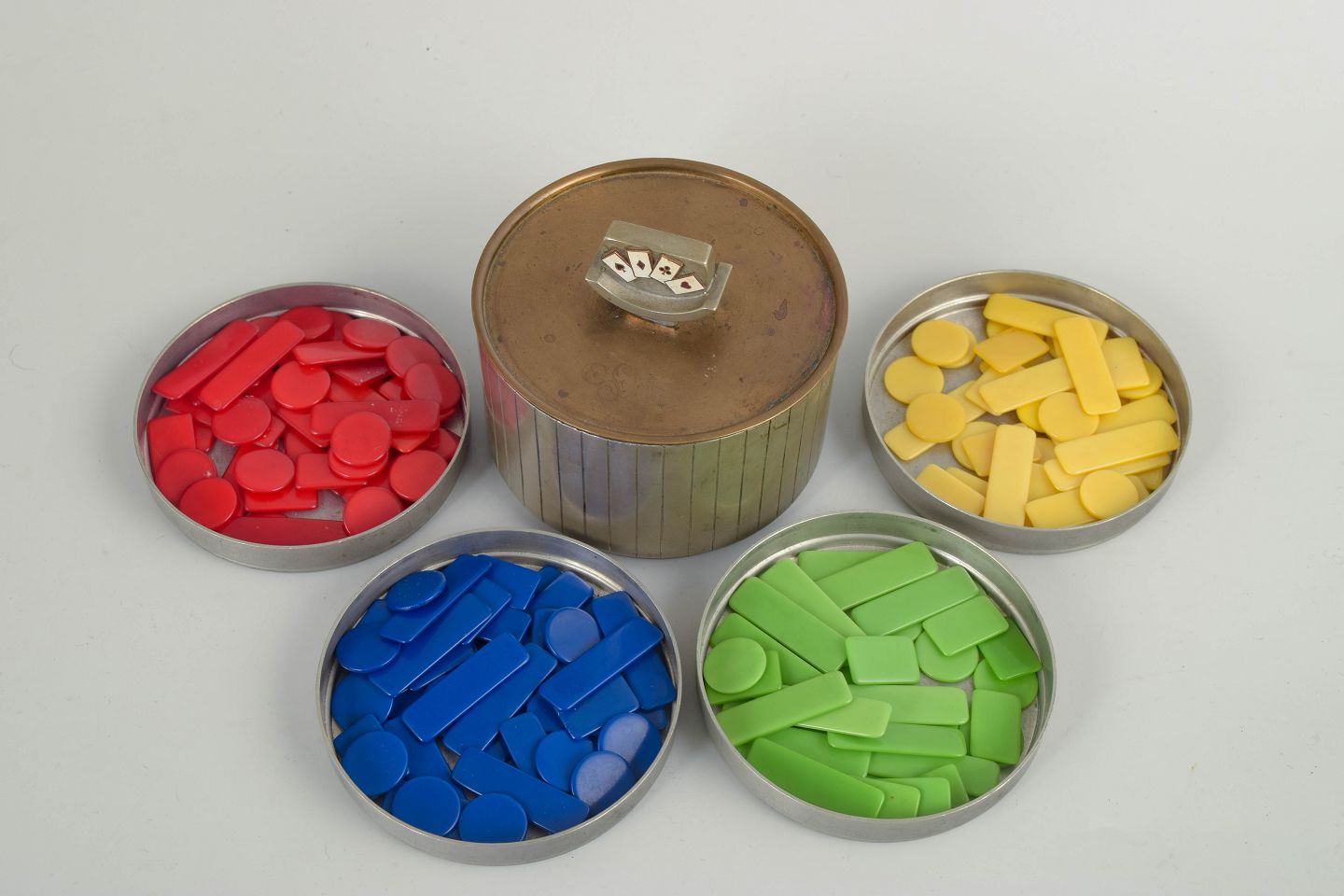 GAB, Guldsmedsaktiebolaget in Stockholm, was a prominent producer of metal arts and decorative objects in the first half of the 20th century. During the Art Deco period, games and social accessories were also designed with the same focus on aesthetics, material quality, and functionality. The combination of pewter and enamel gives this piece an elegant and period-typical expression, where design and entertainment merge seamlessly.
