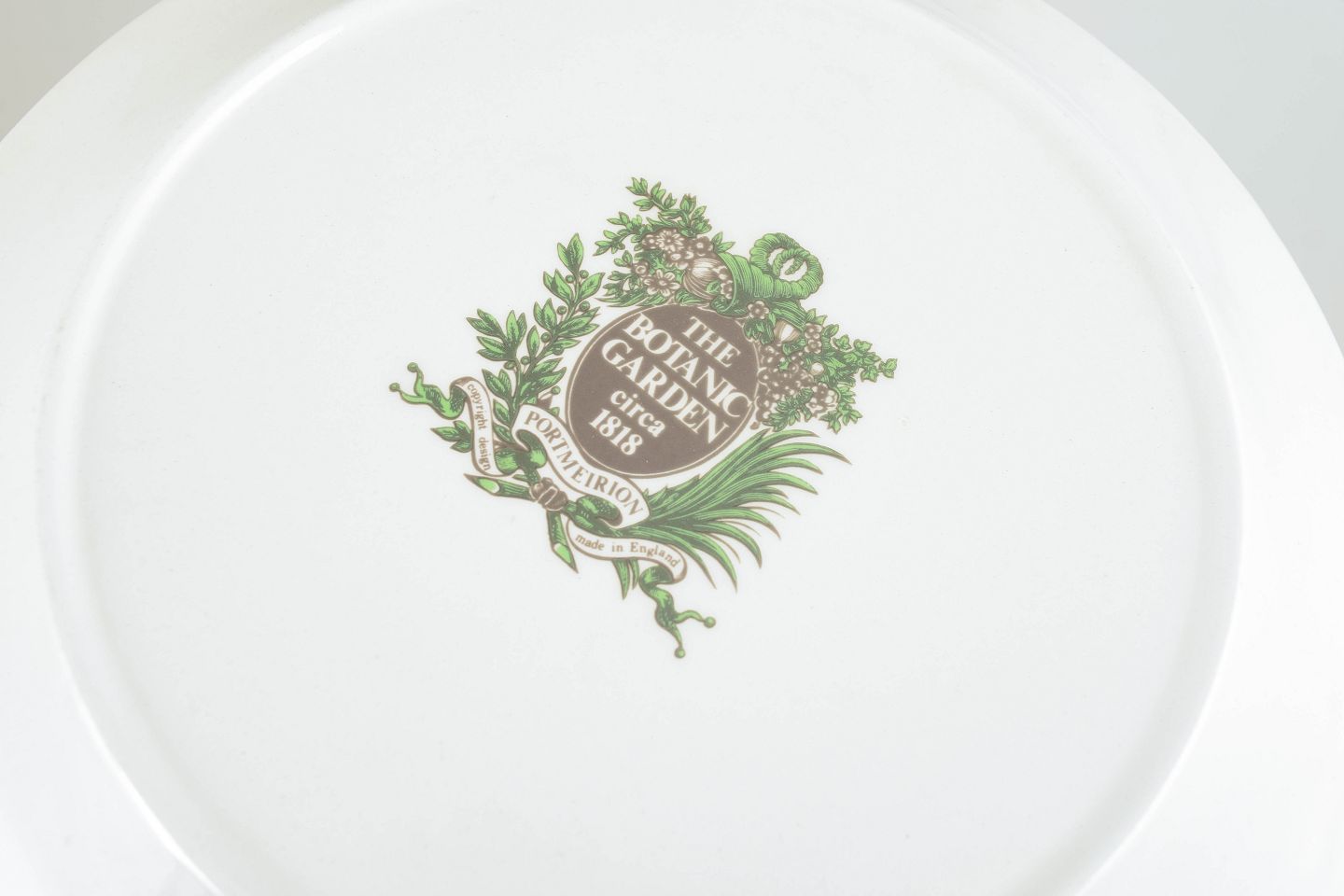 Portmeirion is an English manufacturer renowned for decorative tableware with nature-inspired designs. The “The Botanic Garden” series is based on classical botanical illustrations combined with a green leaf border, giving the pieces a timeless character and making the series one of Portmeirion’s most iconic and collectible.