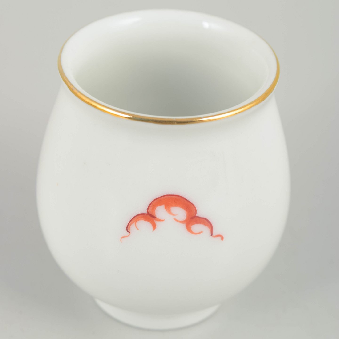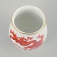 Small baluster-shaped vase in white-glazed porcelain decorated with a red Ming dragon and a gilt rim. The model is marked to the base and was produced in the Meissen area, but not by the Royal Meissen manufactory.