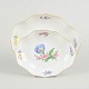 Set of two porcelain dishes hand painted with polychrome flowers and decorated with gilt rims. Classic Meissen forms with gently scalloped edges from the mid 20th century. Both marked with Meissen crossed swords, one in first factory quality and the other cancelled with two incised lines.