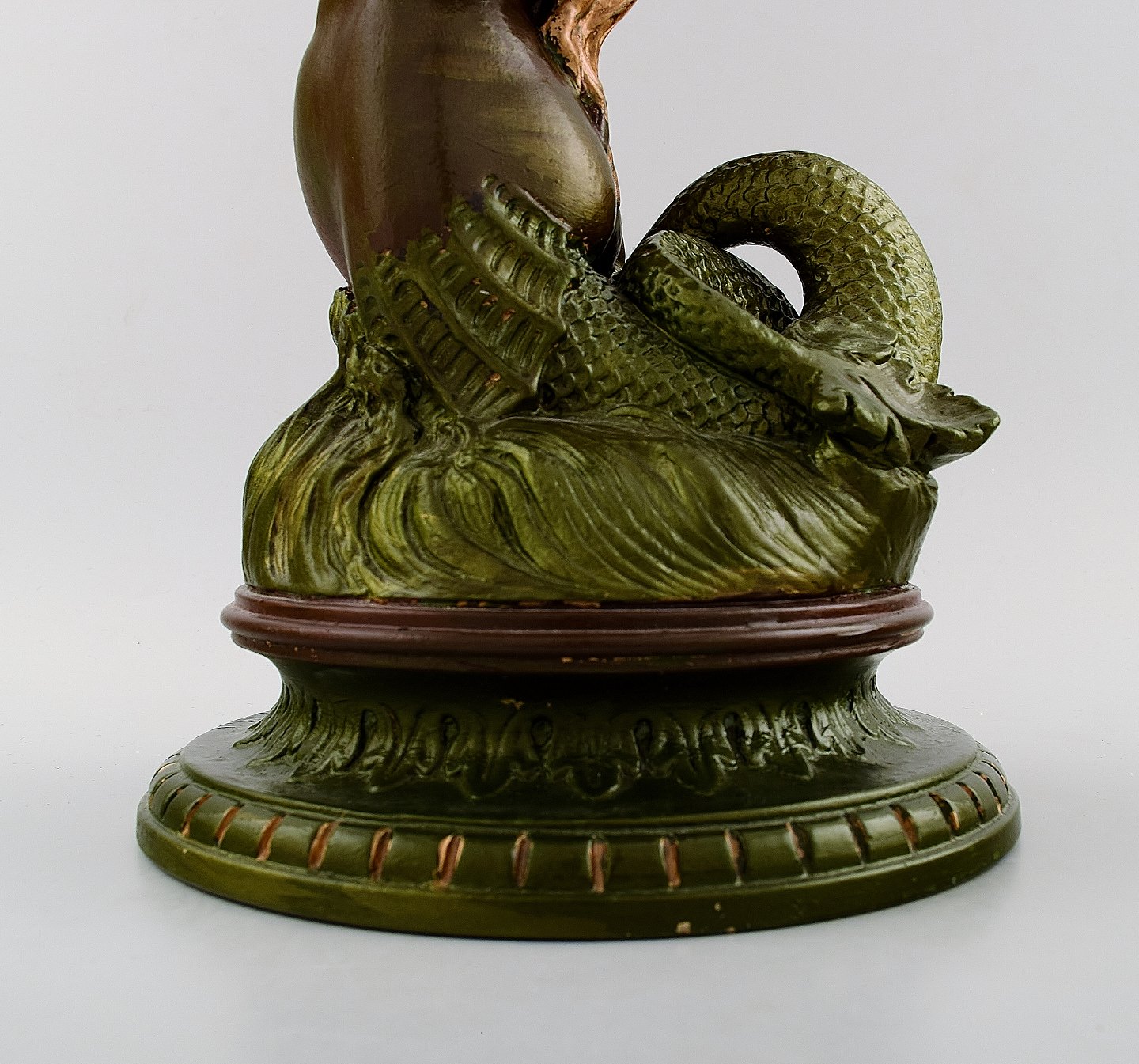 Søholm, Bornholm, stor og tidlig opsats i form af havfrue holdende muslingeskal. Måler : 26 cm. x 42 cm. Stemplet, modelnummer 41, tidligt 1900 tallet. I god stand.