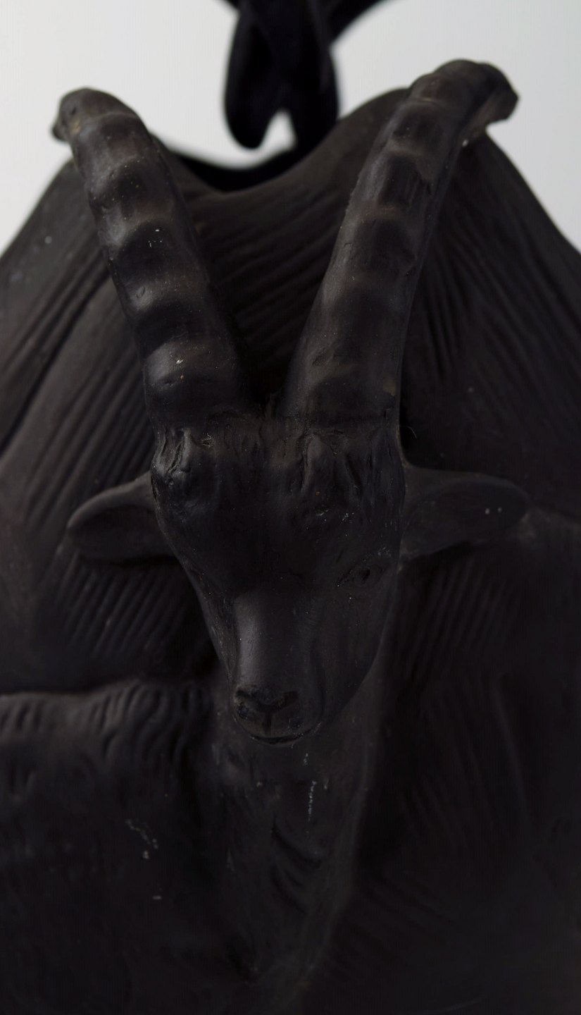 Hjorth skønvirke vase i terracotta, stenbukke. Ca. 1900´erne. Måler : 23 cm. x 21 cm. I perfekt stand. Stemplet.