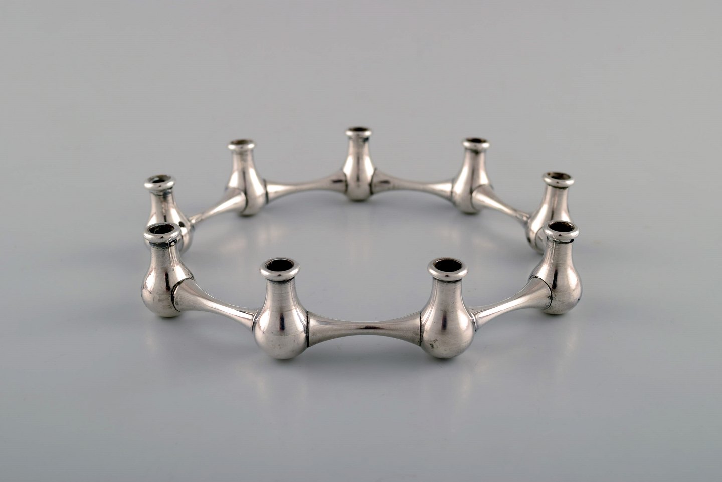 Jens H. Quistgaard. Danish design, 1960 s. Two candlesticks in silver plated metal. Measures: 14.5 cm. x 2.5 cm. (largest) Perfect condition. Stamped.