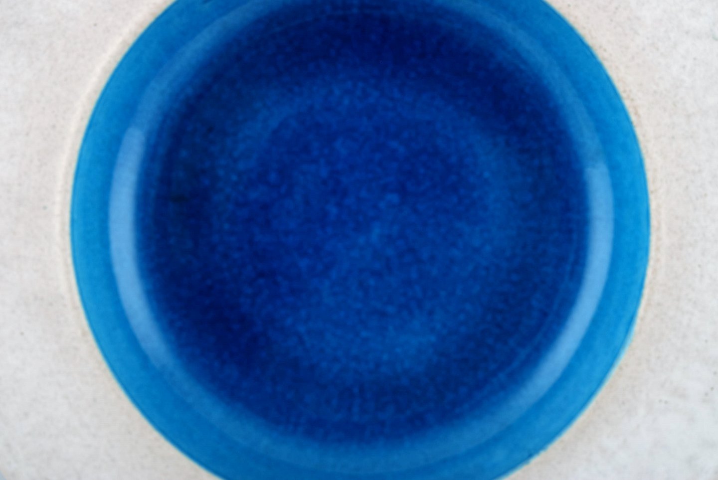 Kähler, HAK, glaseret stentøjs fad, 1960'erne. Designet af Nils Kähler. Turkis glasur. 20 cm. i diameter. 3,5 cm. højt. Stemplet. I perfekt stand.