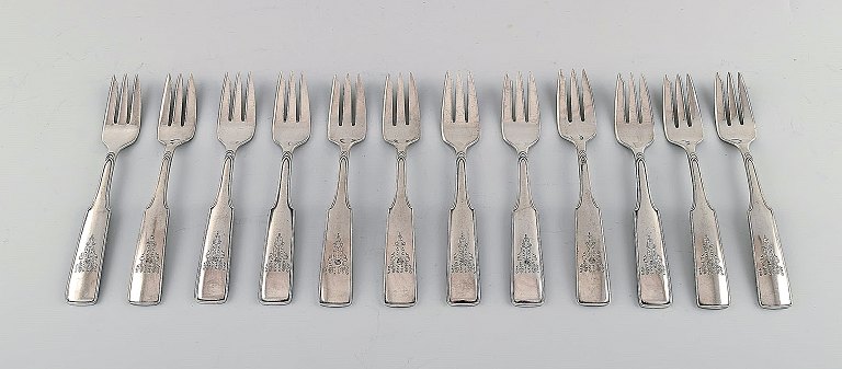 Hans Hansen silverware number 2. Set of 12 pastry forks in all silver.