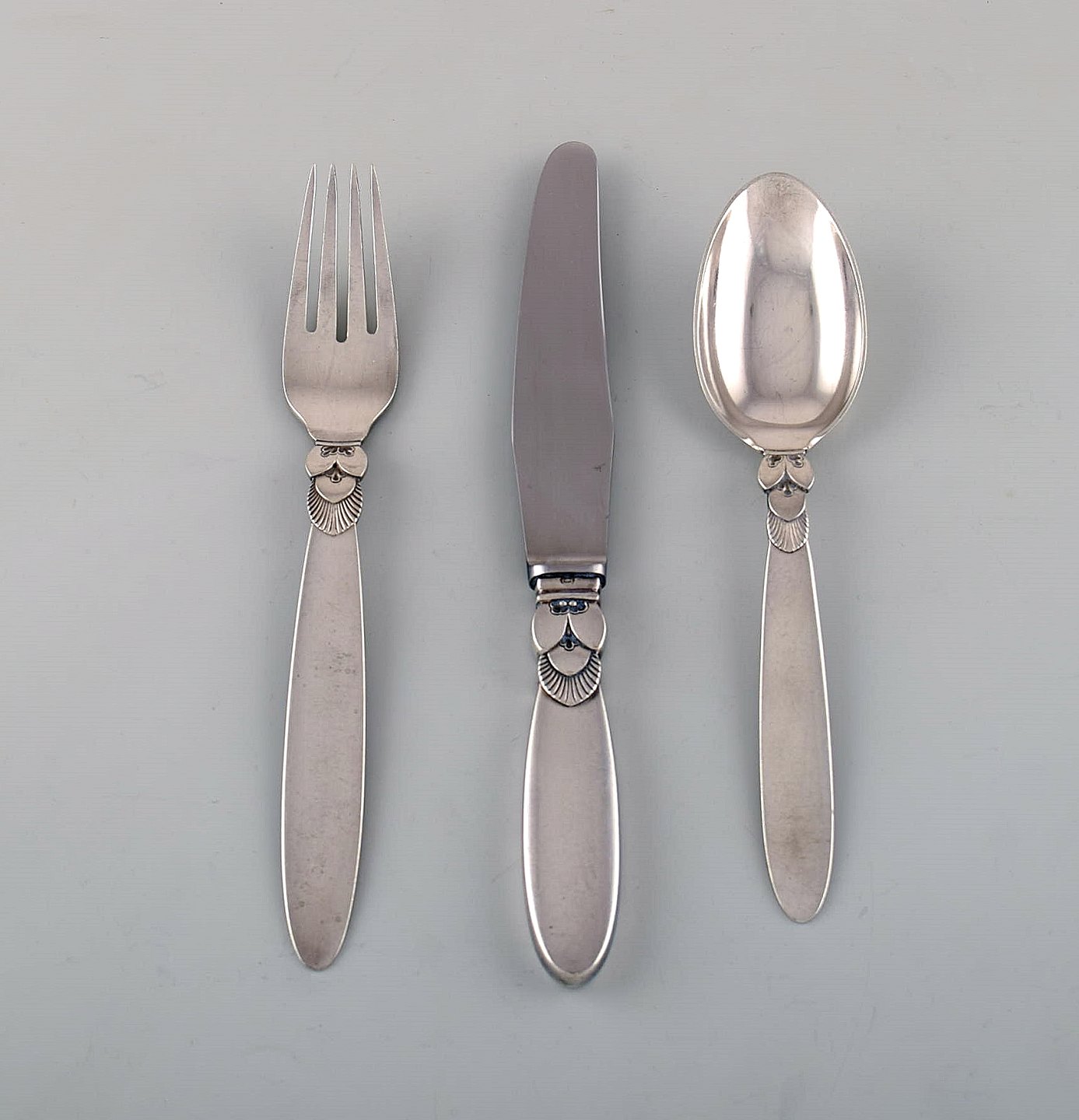 Georg Jensen "Kaktus" bestik. Komplet frokostservice til seks personer i sterlingsølv.