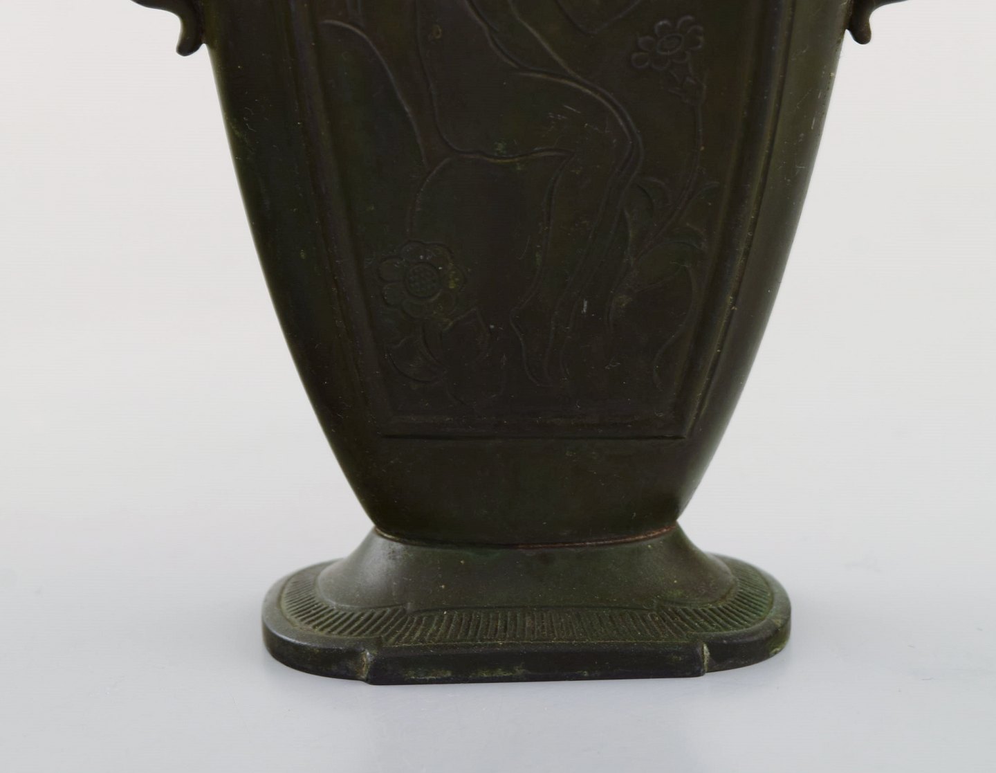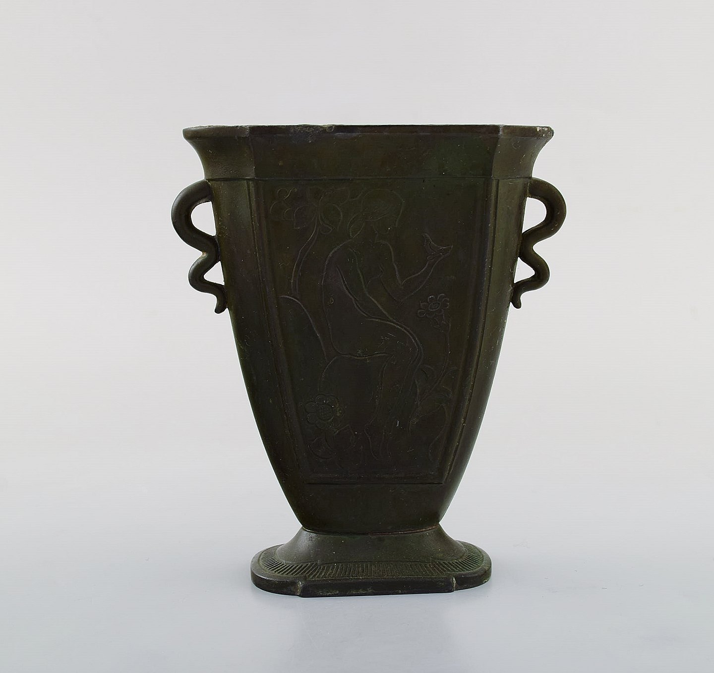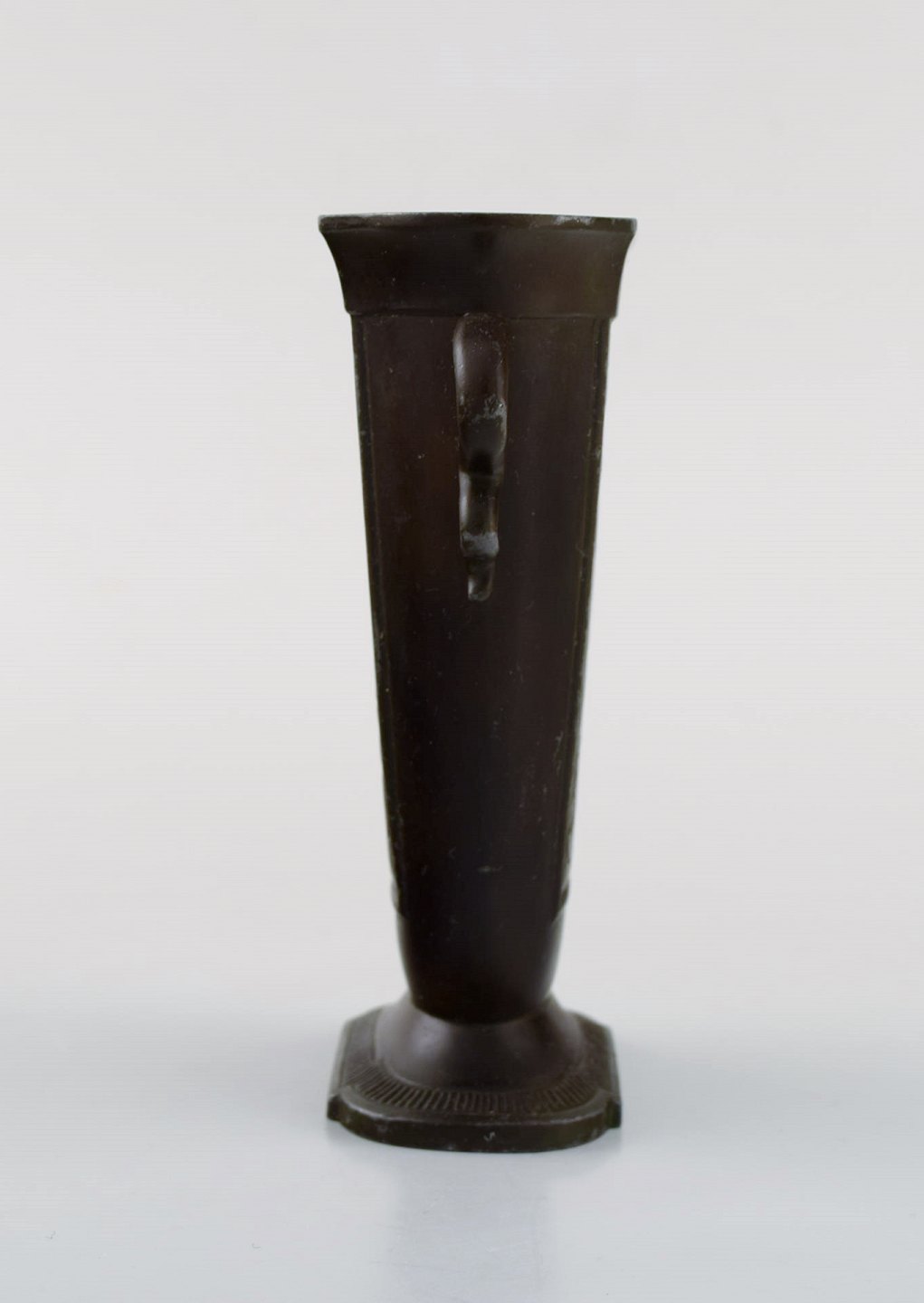 Just Andersen, Danmark. To vaser i diskometal. Modelnummer D78. 1940'erne. Måler: 12 x 11,5 cm. I god stand med brugspræg. Stemplet.