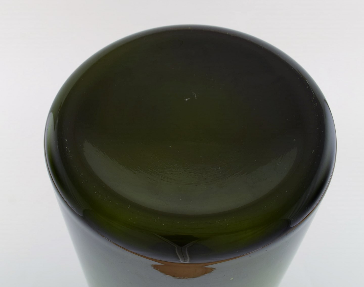 Otto Brauer for Holmegaard. Stor vase/flaske i grønt kunstglas med blå kugle. 1960'erne. Måler: 51 x 17 cm (inkl kugle). I perfekt stand.