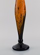Daum Nancy, France. Large art deco "Verre de jade" vase in orange and black mouth blown art glass with inlaid gold decoration. Dated 1919-23.