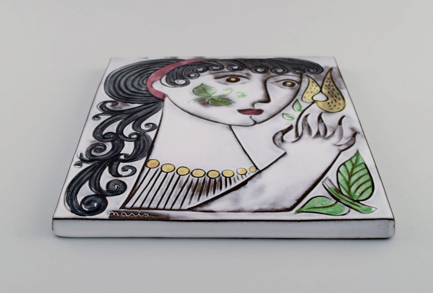 Mari Simmulson for Upsala-Ekeby. Vægplakette i glaseret stentøj med kvindeportræt. 1960'erne.