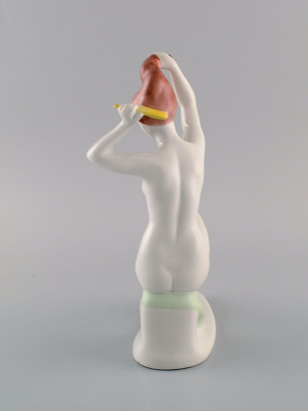 Aquincum, Budapest. Håndmalet art deco porcelænsfigur. Nøgen kvinde reder sit hår. 1940'erne. Måler: 22 x 15 cm. I flot stand. Stemplet.