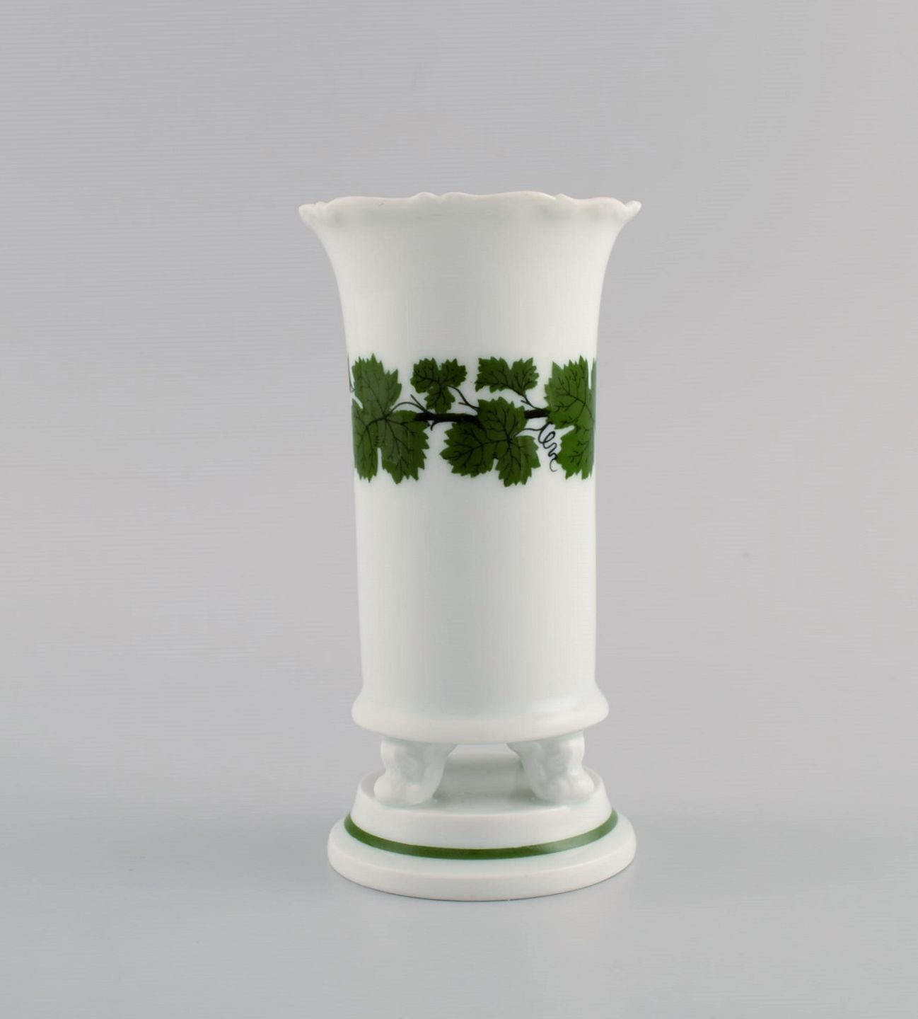 Meissen Green Ivy Vine vase and bowl in hand-painted porcelain. 1940's.