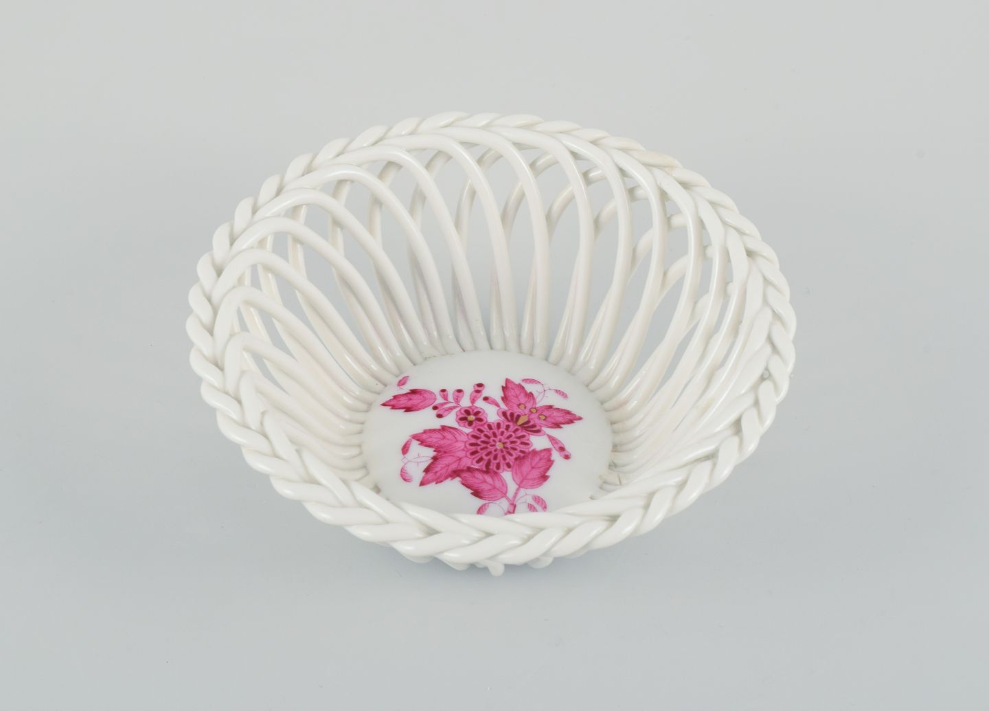 Herend pink Chinese Bouquet, to små skåle med fletværk i håndmalet porcelæn. Største måler D 11,5 cm. x H 5,0 cm. Midt 1900-tallet. I flot stand. Stemplet.