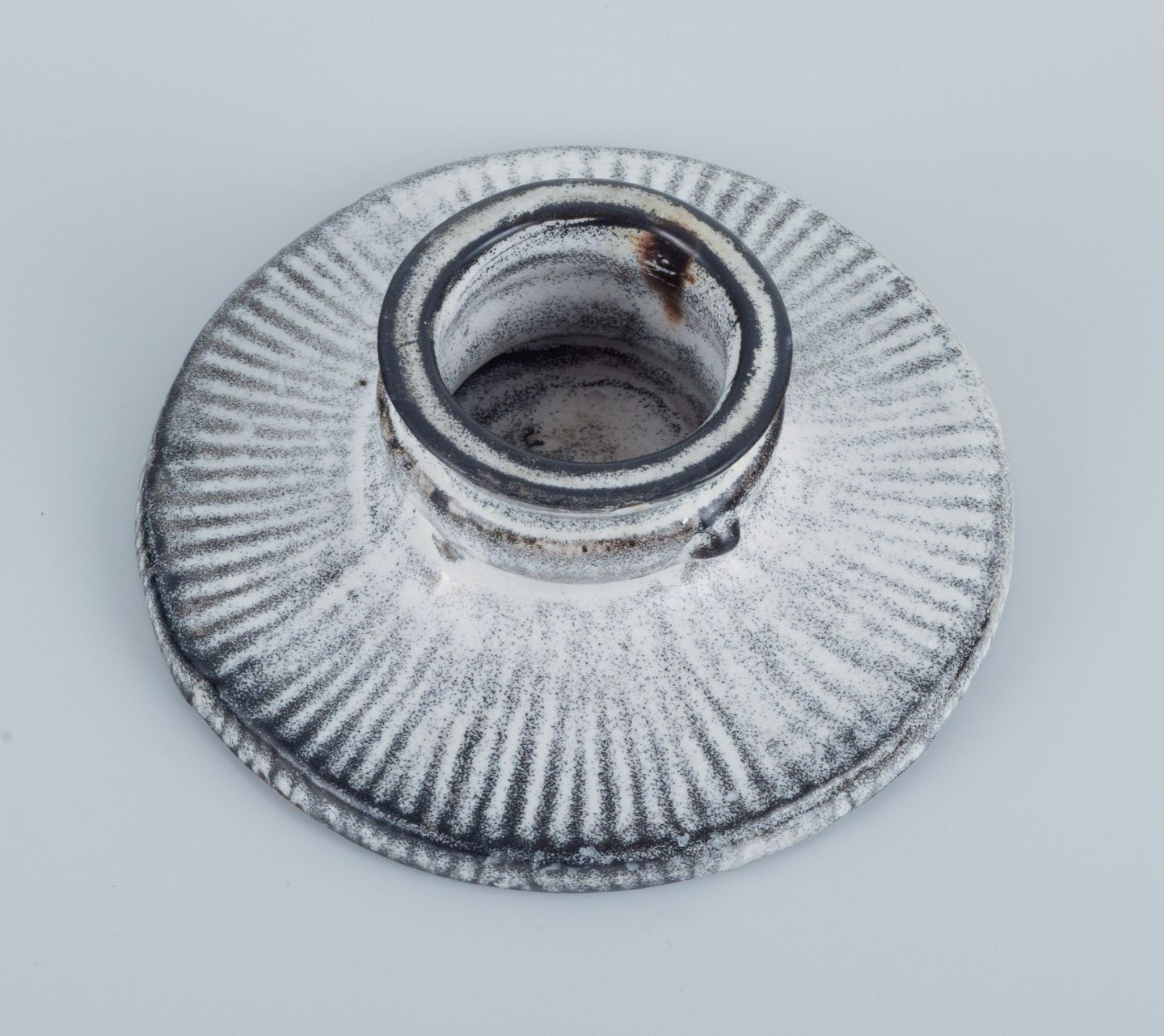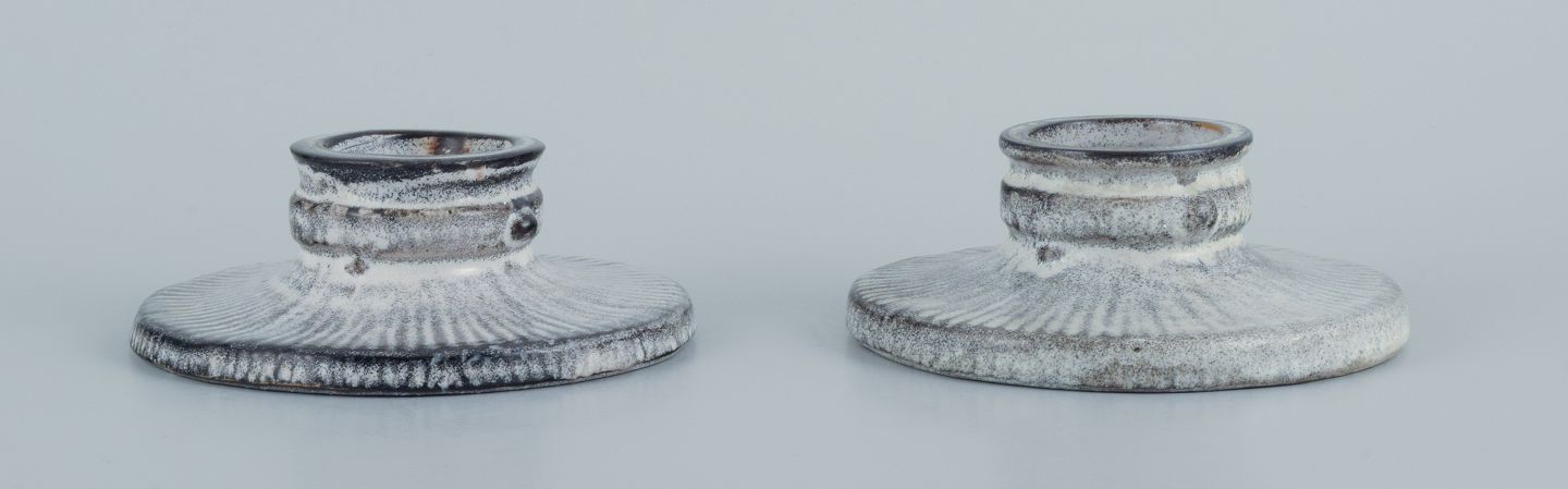Svend Hammershøi for Kähler. Et par lave lysestager i lertøj med sortgrå dobbeltglasur. 1930/40'erne. I flot stand. Stemplet. Mål: D 13,0 x H 5,0 cm.