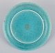 Wilhelm Kåge for Gustavsberg, ”Argenta” fad i keramik. Grøn glasur dekoreret med pære i sølv. 1940’erne. Modelnummer 1005. I flot stand med naturlige krakeleringer. Stemplet. Mål: D 18,8 cm. x H 2,0 cm.