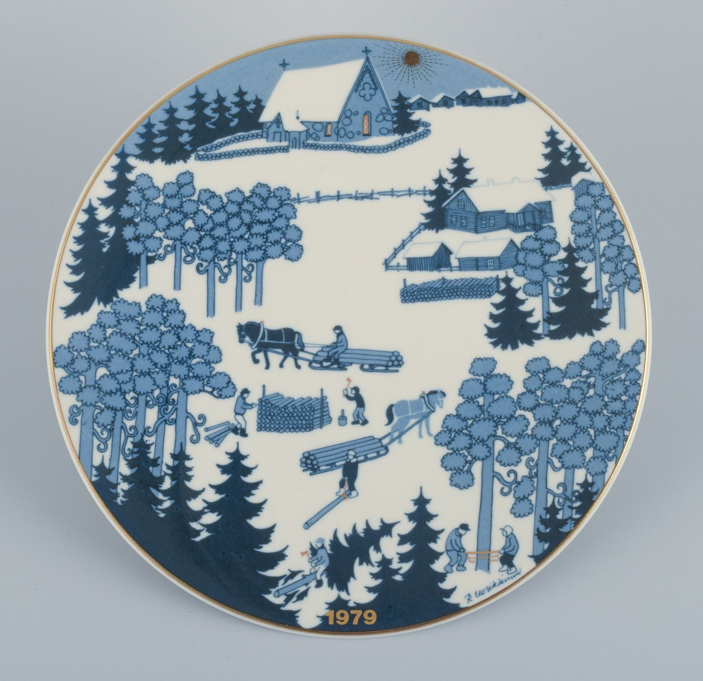 Raija Uosikkinon for Arabia, Finland, et set på seks juleplatter i porcelæn. Finske julelandskaber.
