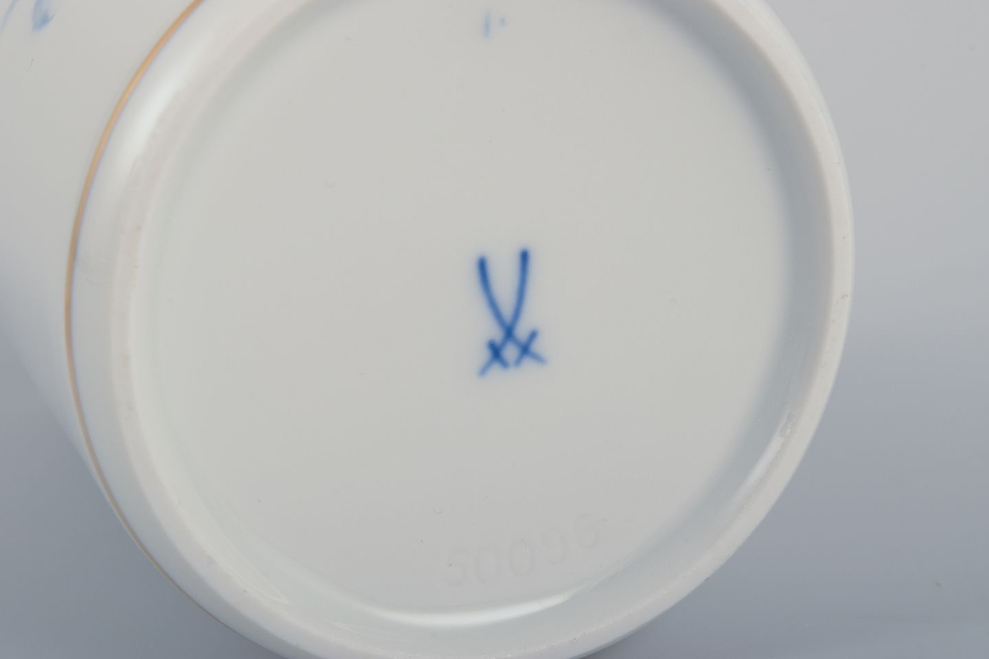 Meissen, Germany. Two vases. Hand-decorated with blue floral motifs, gold rim. Mid-20th century. Signed. Perfect condition. First factory quality. Dimensions: H 9.5 cm x D 6.5 cm.