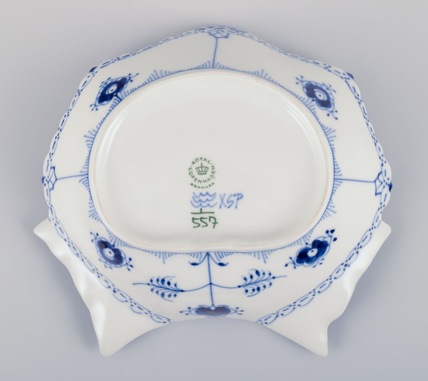 Royal Copenhagen Blue Fluted Half Lace, mussel-shaped bowl.