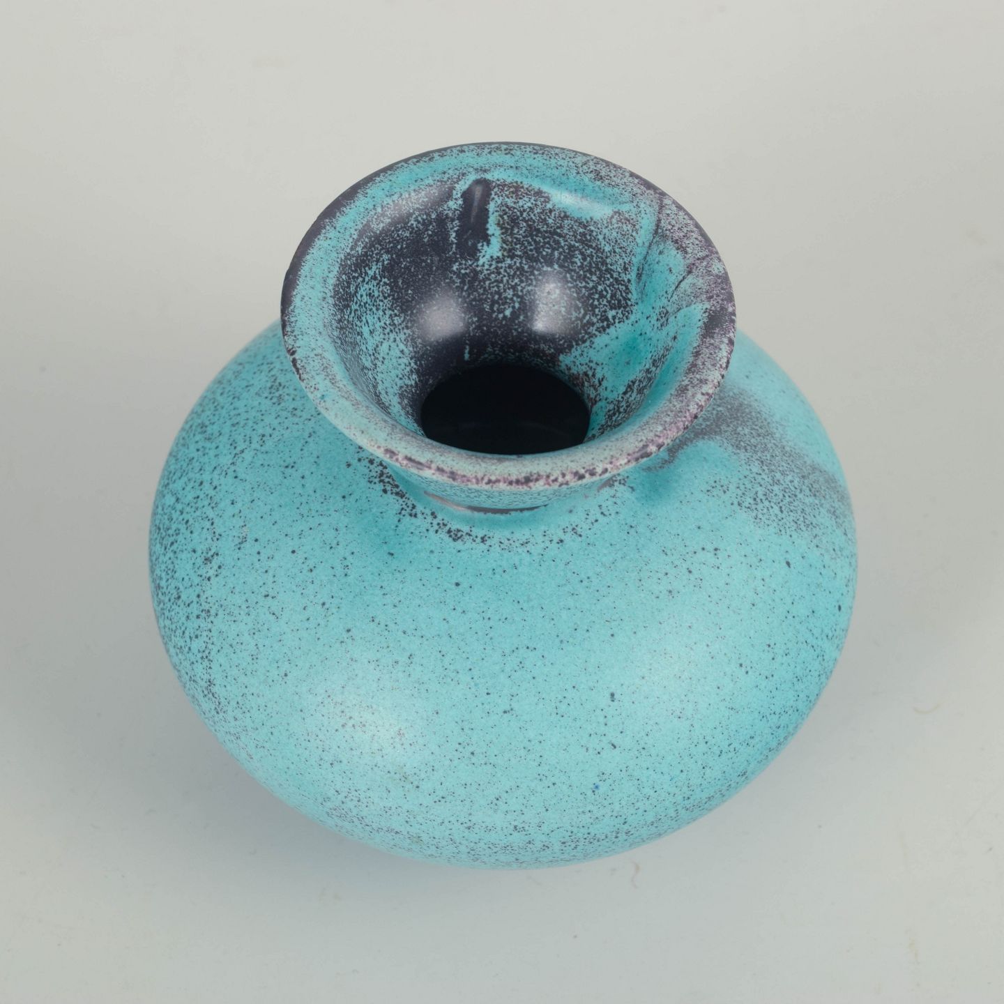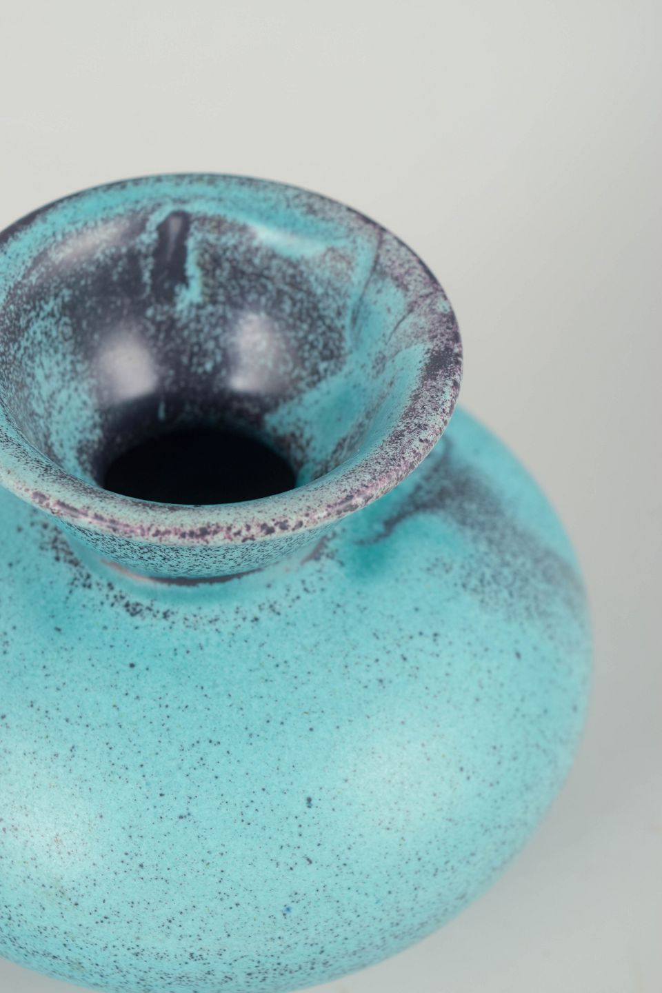 Compact, baluster-shaped stoneware vase with a narrow, slightly flaring neck. Finished in a clear turquoise glaze with a fine, lively surface and subtle darker nuances around the rim. The calm, well-balanced form reflects Svend Hammershøi’s characteristic focus on proportion, volume, and the material presence of the glaze.